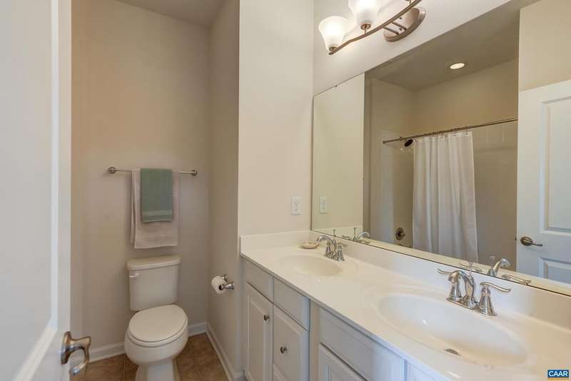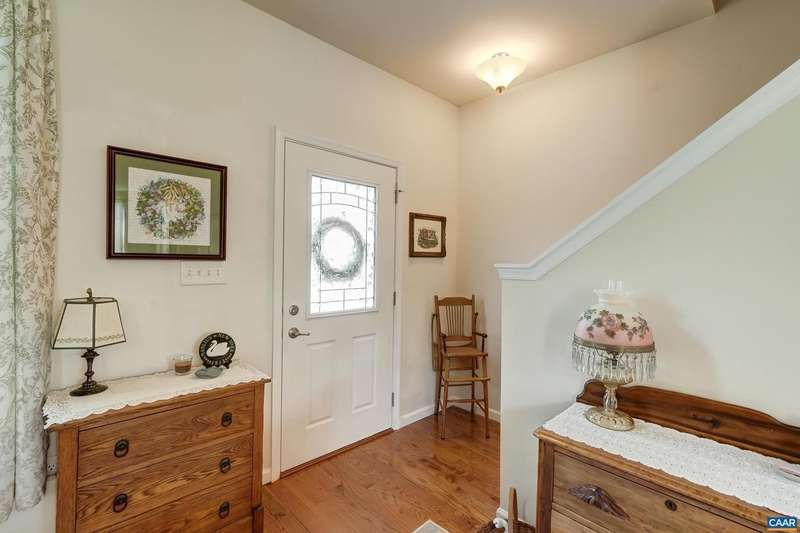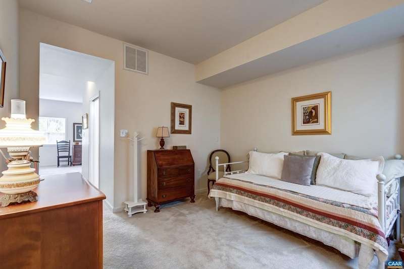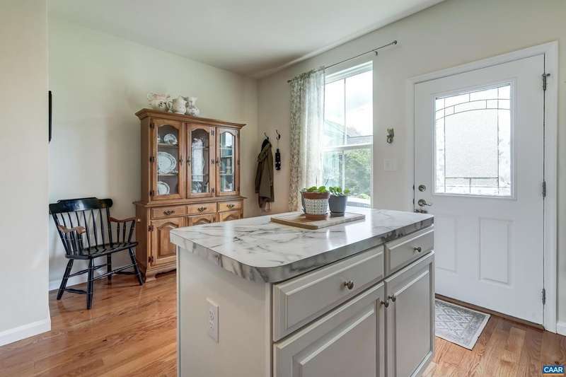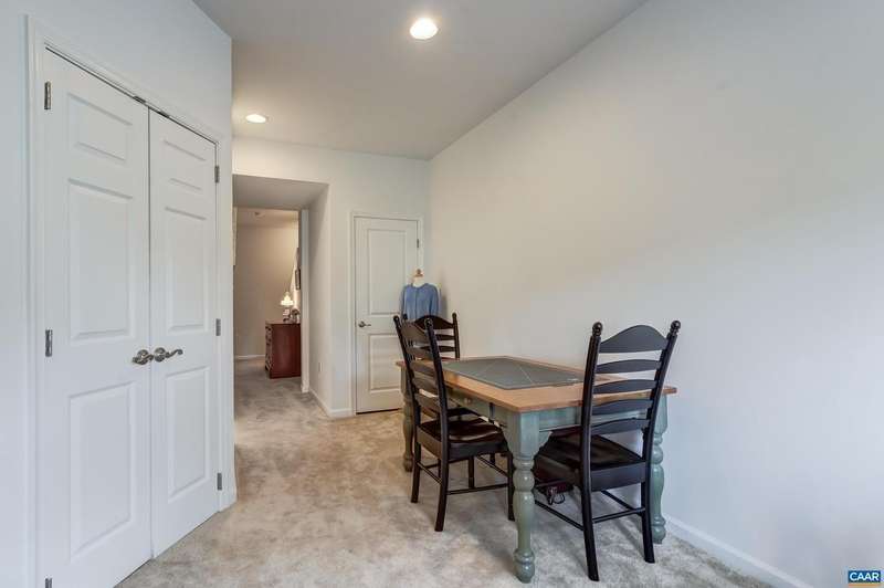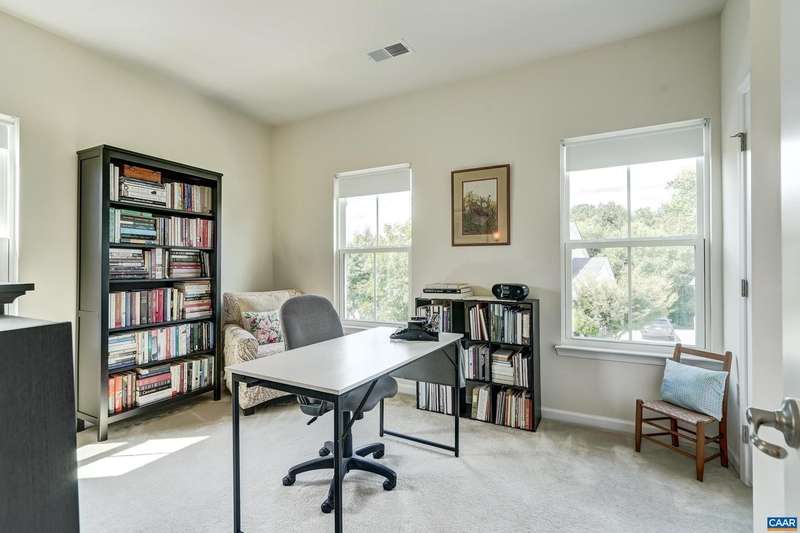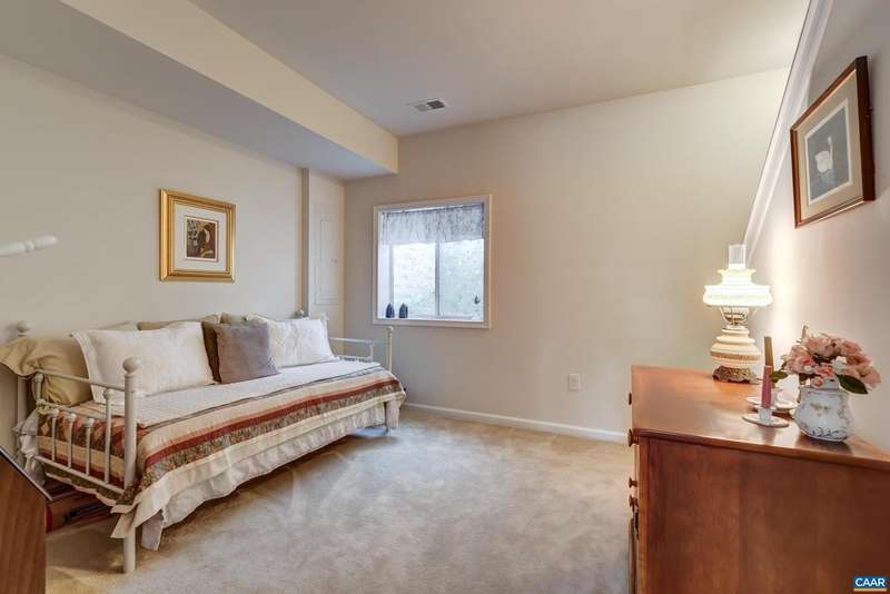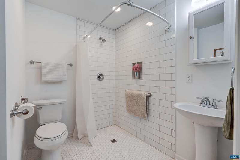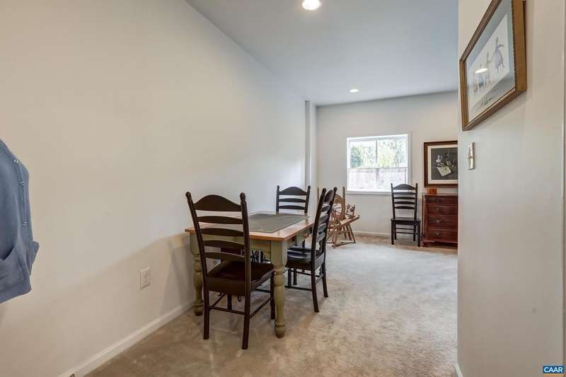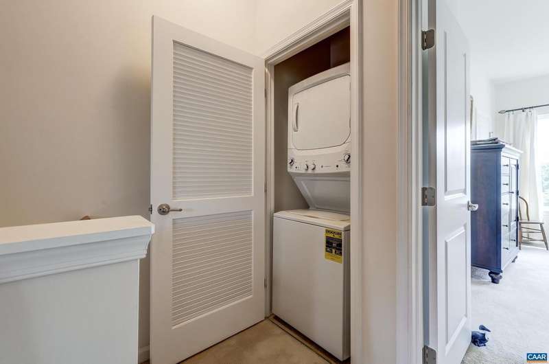 This charming duplex in Wickham Pond with a full basement is a rare find in Western Albemarle! With white picket fence and beautiful gardens and landscaping, this home looks like it's straight out of a fairytale. This light-filled home features an open main level floor plan with hardwood floors, two bedrooms on the second level plus a full basement that could be a great in-law or teen suite! The great room/dining area opens to the practical kitchen with white cabinets, island work surface and white appliances with stainless steel refrigerator. Upstairs, the primary bedroom features an ensuite bathroom with tub/shower combo, and two large closets. The second bedroom, full bathroom and stacked washer/dryer complete the second floor. The lower level boasts a large rec room, third bedroom and accessible bathroom with zero-step shower. Two private parking spots at the rear of the home too!,White Cabinets