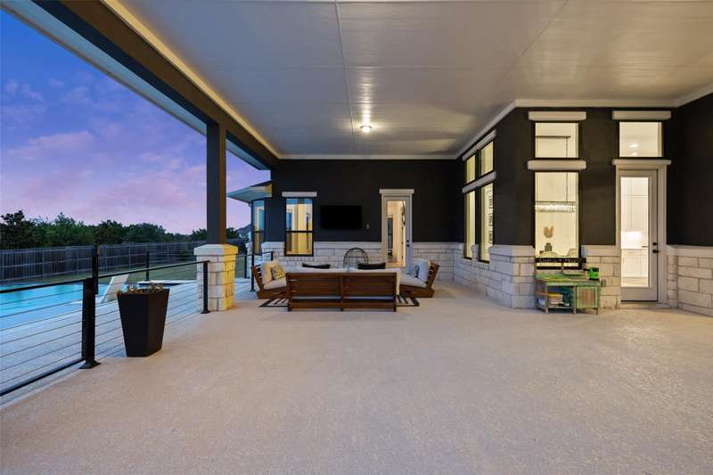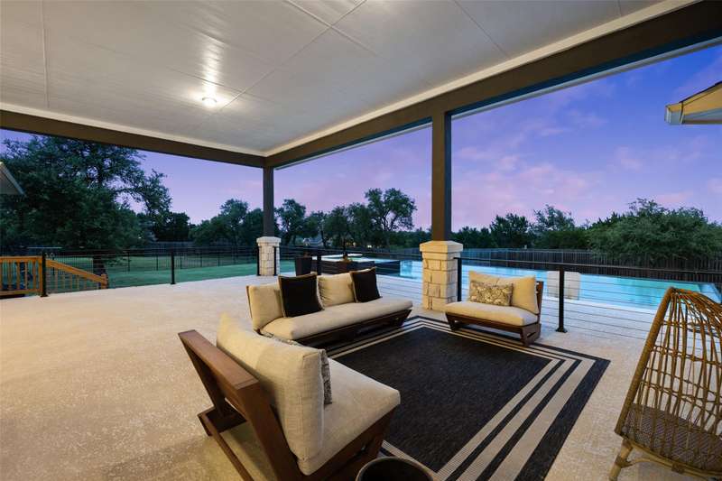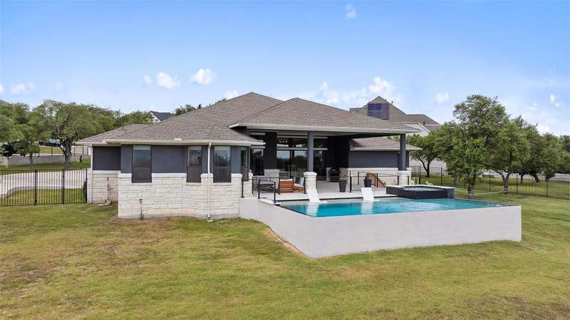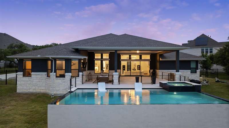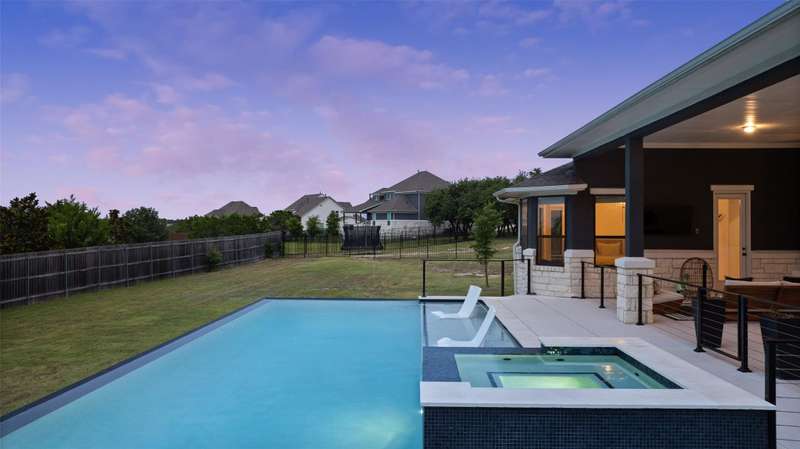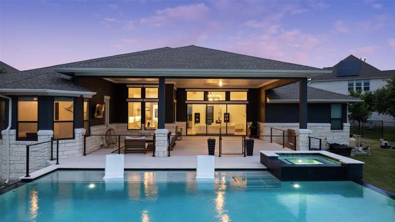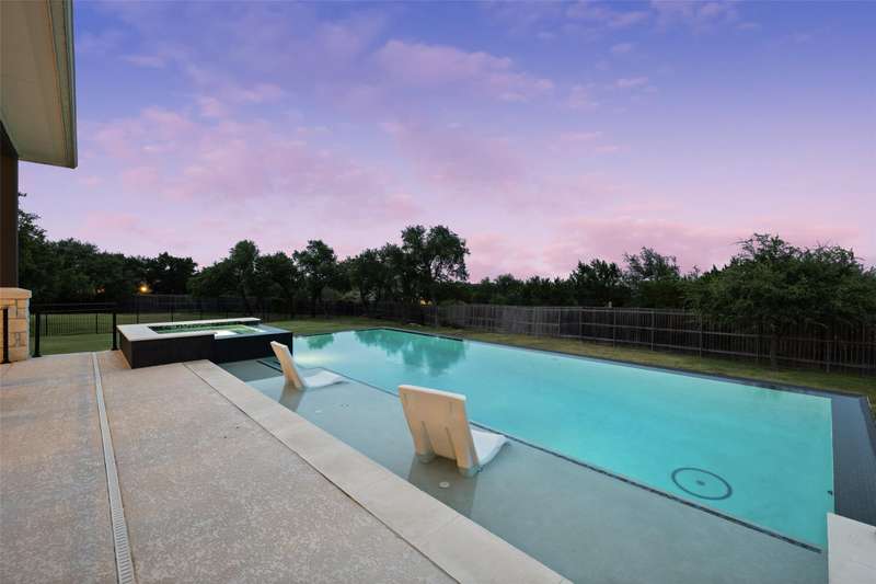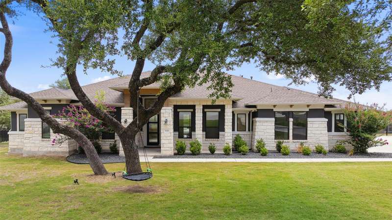 Tucked on a quiet cul-de-sac in the heart of Dripping Springs, this stunning home is protected from the street by mature oak trees--offering privacy, curb appeal, and the perfect shaded spot to enjoy a cold drink while kids play out front. Inside, soaring ceilings, rich architectural details, and oversized windows create an open, elevated feel. The layout includes multiple living and dining areas, custom light fixtures throughout, a dedicated media room with surround sound and projector, and spacious bedrooms that offer privacy for all.
