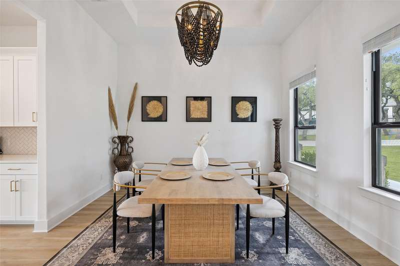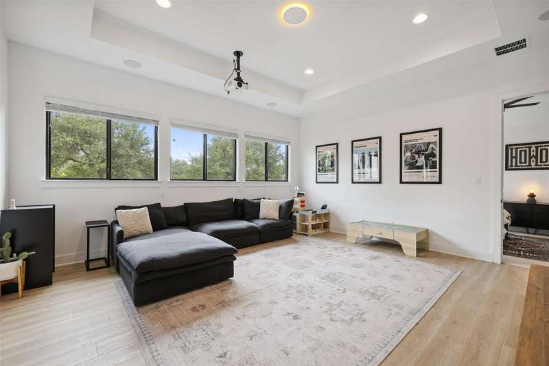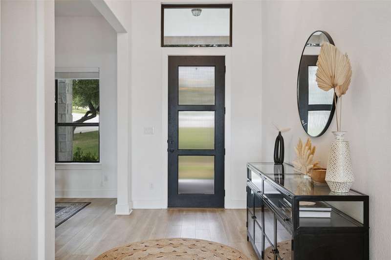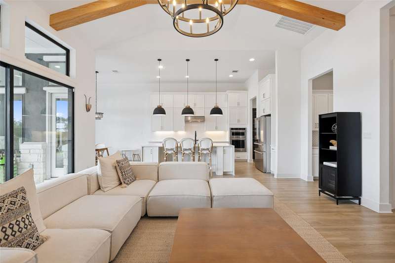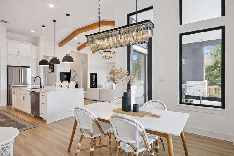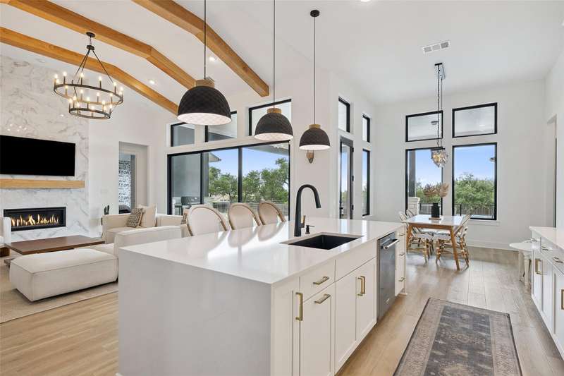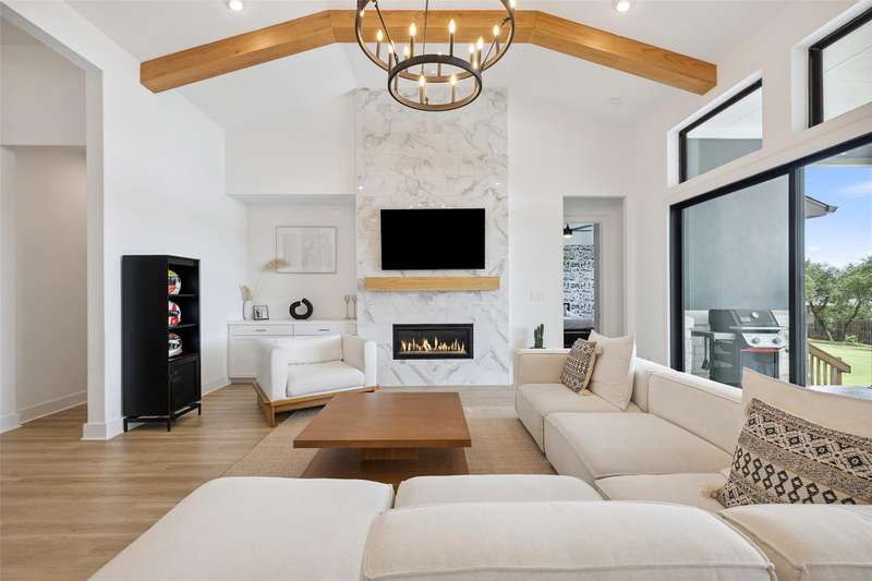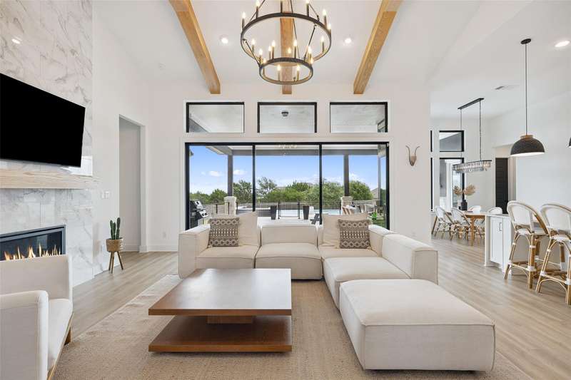 Tucked on a quiet cul-de-sac in the heart of Dripping Springs, this stunning home is protected from the street by mature oak trees--offering privacy, curb appeal, and the perfect shaded spot to enjoy a cold drink while kids play out front. Inside, soaring ceilings, rich architectural details, and oversized windows create an open, elevated feel. The layout includes multiple living and dining areas, custom light fixtures throughout, a dedicated media room with surround sound and projector, and spacious bedrooms that offer privacy for all.