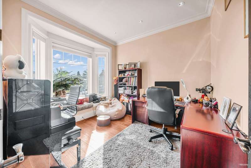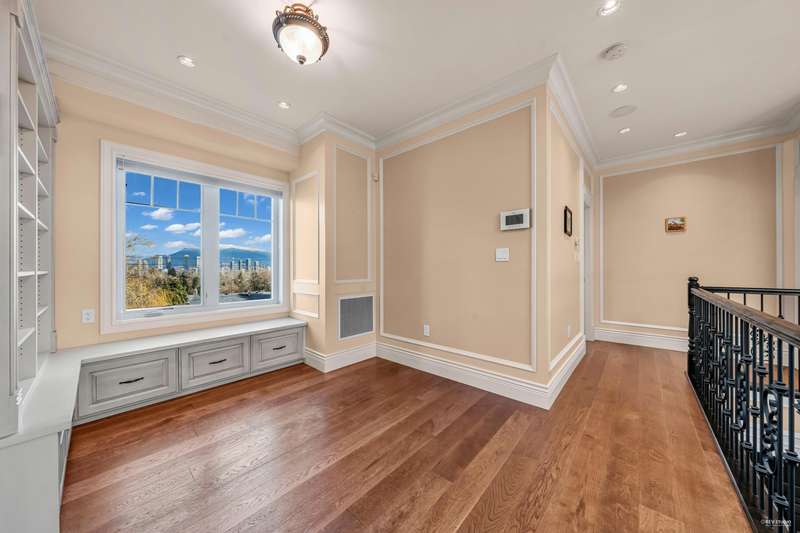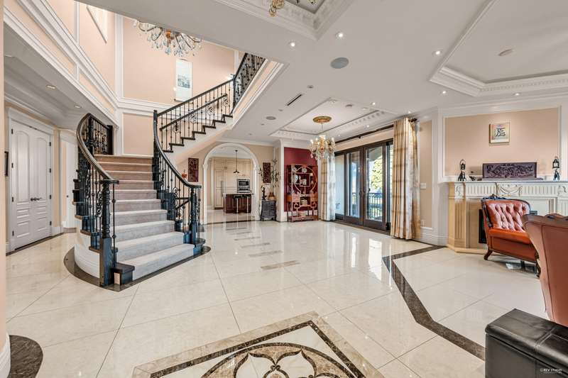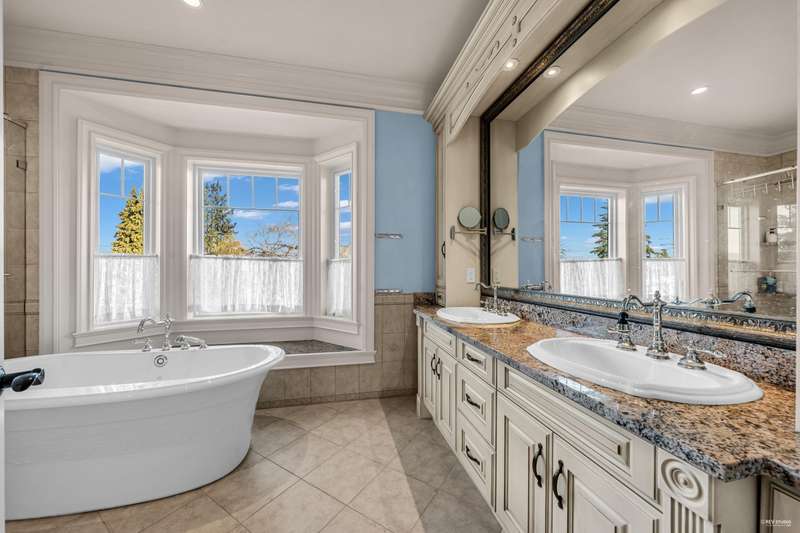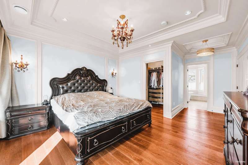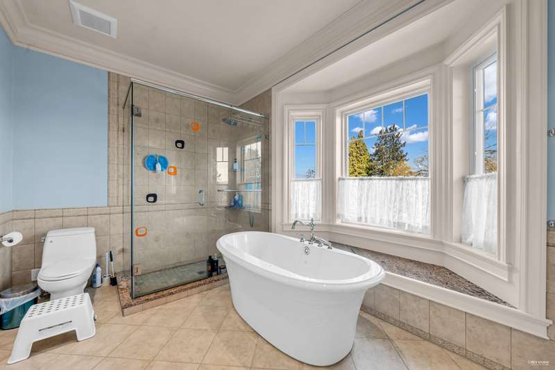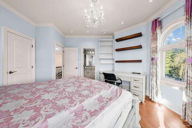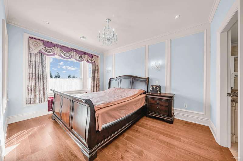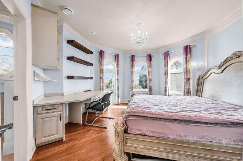 Stunning custom-built corner lot home in Garden Village with breathtaking mountain views, offers luxury, comfort, and unparalleled craftsmanship. Boasting 6 bedrooms and 6.5 bathrooms, with open and spacious layout and high-end finishes, including crown and floor molding, a gourmet kitchen with top-tier Thermador s/s appliances, a sweeping spiral staircase, HRV, A/C, 8-speaker music system and an 8-camera security system. Two bedroom ensuite in the basement with separated entrance/ kitchen/ laundry.The private low-maintenance backyard with custom-built gazebos creating the perfect retreat for summer. 2-car garage plus ample driveway parking. 5 mins walking to bus stops, 15 minutes to Patterson SkyTrain, Quick access to Highway 1. Catchment School: Chaffey-Burke Elementary & Moscrop High.