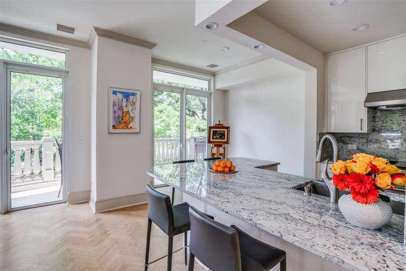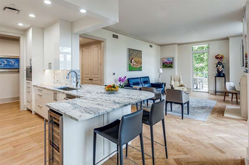 Beautifully remodeled condo with spacious open living area and expansive floor-to-ceiling windows. Two private terraces with serene tree-top views. Luxury upgrades throughout including stunning white-washed oak floors and designer finishes. Gourmet kitchen features sleek European soft-close cabinetry, striking white-and-blue-diamond granite countertops, Wolf gas range, Sub-Zero refrigerator, built-in wine cooler, and breakfast bar. Primary bedroom opens to a private terrace and has a large walk-in-closet with custom California Closet lighted installation. Spa-inspired primary bath has Carrera marble finishes, garden tub, and separate shower. Two reserved parking spaces (192 and 193) and storage space (S101). The terraces offer over 250 square feet of additional space.Vendome residents enjoy exclusive access to resort-style amenities, including a pool with cabanas, owner's library, elegant entertaining room, a state-of-the-art fitness center, 24-7 valet and concierge services, and a dedicated dog park. Monthly HOA fee includes all utilities except WiFi and cable.