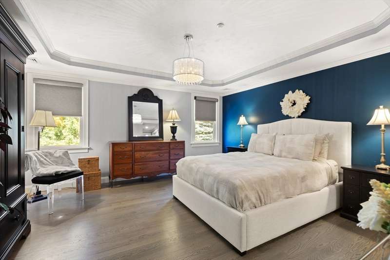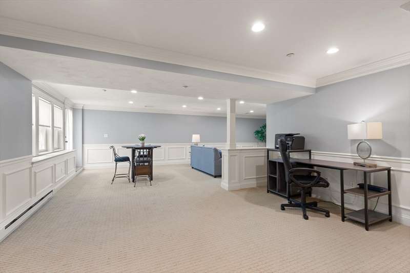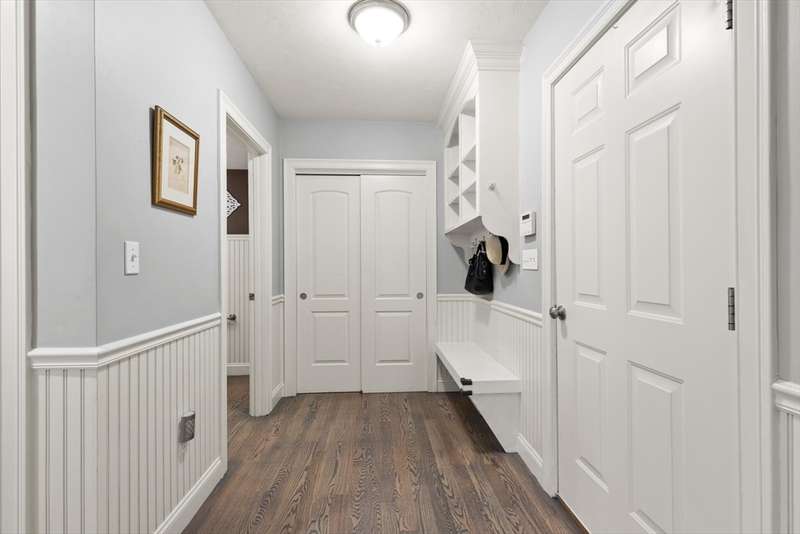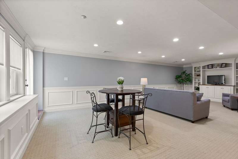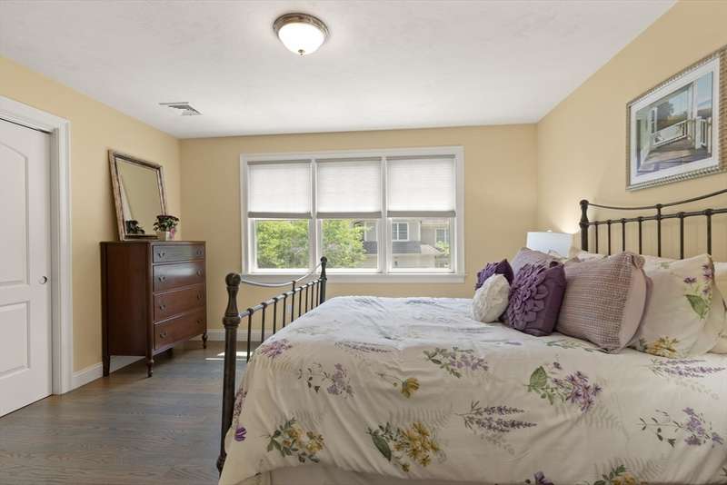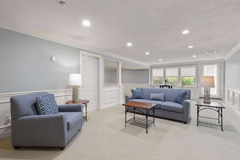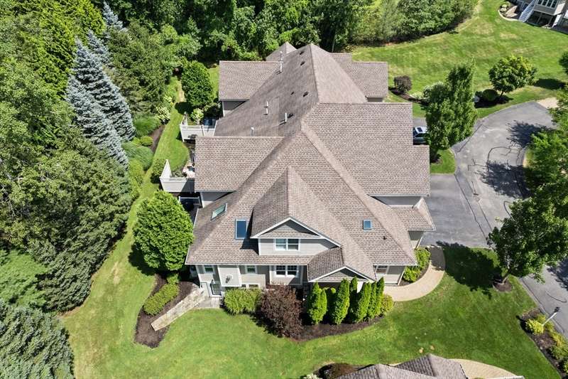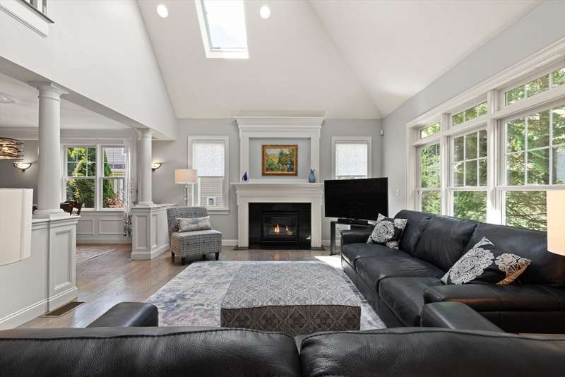 Sophisticated, airy, and bright end unit condo blending elegance and comfort. Perfectly positioned at the rear of the complex, this stunning 3 bedroom home enjoys tranquil views of conservation land. A soaring vaulted ceiling with skylight, gas fireplace, gleaming hardwoods, and refined moldings set the tone for quality throughout. The expansive kitchen features cherry cabinetry, stainless steel appliances, a peninsula, and an inviting eat-in area with sliders to the deck. The formal dining room shines with wainscoting and a custom bar with glass-front cherry cabinetry, ideal for entertaining. A first floor office with tailored built ins provides an inspiring workspace. Upstairs includes three spacious bedrooms, including a luxurious primary suite, plus convenient second floor laundry. The finished walk out lower level with full bath expands the living space, perfect for a media room, guest suite, or gym. Two car garage and prime Sudbury location. NOT AGE RESTRICTED!