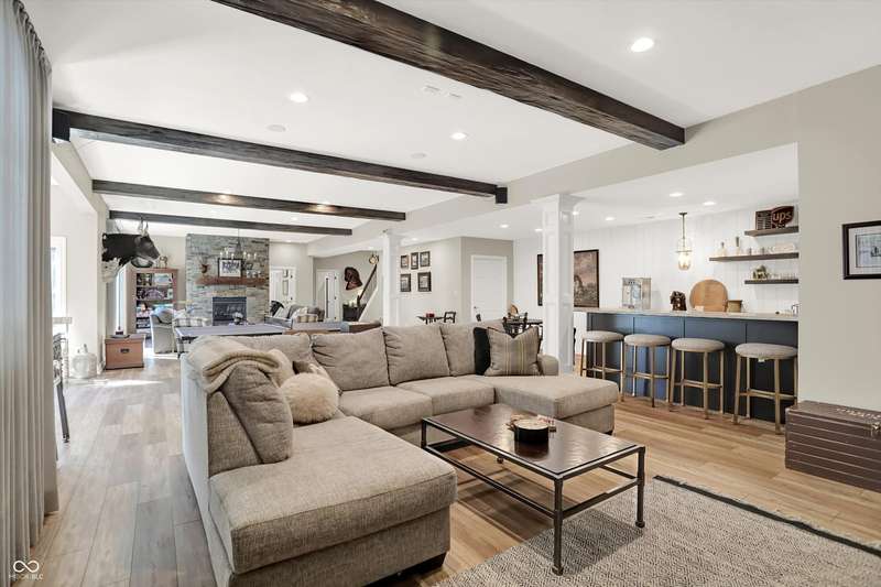 Home is back on the market due to no fault of seller. Discover the beauty of life well-lived in this stately custom brick home, perfectly positioned to capture tranquil views of Sugar Creek. This 5-bedroom, 5-bath masterpiece offers a harmonious blend of elegance, comfort, and versatility. From the moment you enter, the soaring ceilings and exquisite custom detailing set the stage for a home that is as welcoming as it is sophisticated. The heart of the home is the dream culinary kitchen-a space that inspires with its premium appliances, sleek countertops, and generous layout. Imagine preparing meals for family or entertaining guests in a kitchen that is both functional and stunning. Flowing seamlessly from the kitchen is the inviting 3-seasons room, where you can sip your morning coffee while soaking in the peaceful views of the creek or enjoy evenings surrounded by the beauty of nature. This space becomes a sanctuary year-round, perfect for quiet moments or lively conversations with friends. The walkout basement is a showstopper, designed to elevate your lifestyle. A warm fireplace anchors the space, while a stylish bar area invites celebrations and gatherings. Additional finished areas provide endless possibilities-a workshop for creative projects, a home gym to keep you energized, or a craft room to explore your passions. The home's five bedrooms is a private haven, offering ample space and thoughtful design. The primary suite, with its luxurious ensuite bath, feels like your personal retreat, perfect for relaxation at the end of the day. Every corner of the home showcases designer touches, from the custom ceilings to the hand-selected finishes, ensuring a cohesive blend of sophistication and comfort. Outside the magic continues, the natural beauty of Sugar Creek offers an unparalleled backdrop for outdoor gatherings, quiet reflection, or simply enjoying the changing seasons. This home isn't just a place to live-it's a lifestyle.