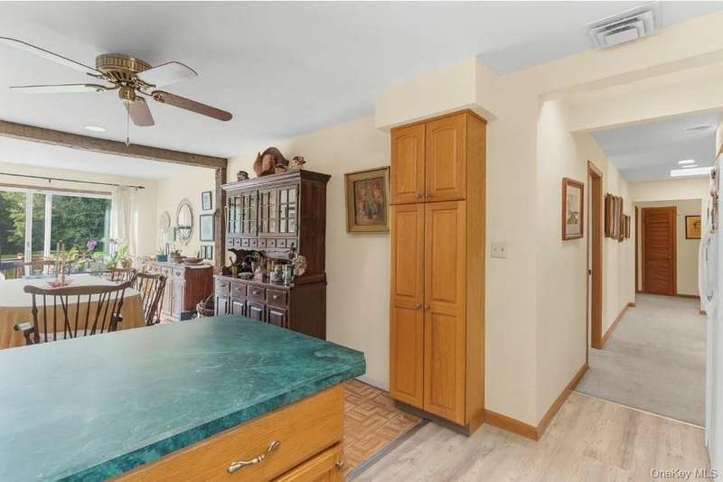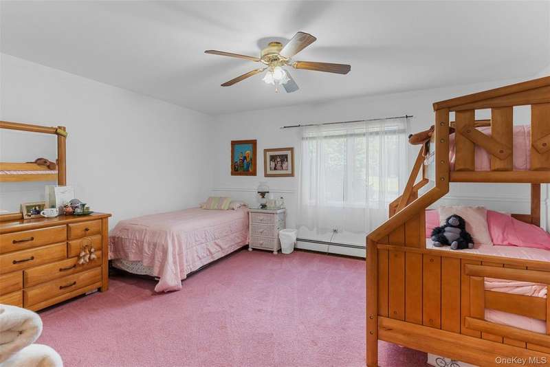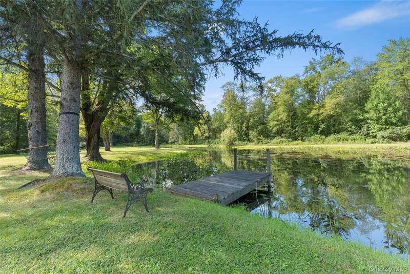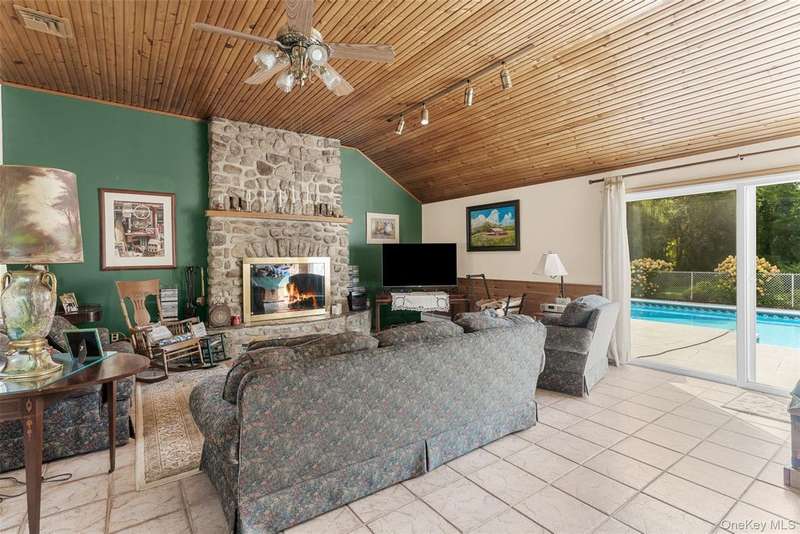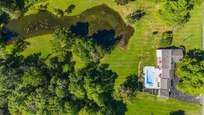 Welcome to Willow Pond, a 4 bedroom sprawling ranch with inground pool, large stocked pond, and almost 5 beautiful acres. A picture perfect setting for a lovely country home, where pride of ownership shines. Inside you are greeted by soaring ceilings with wood detail, a handsome stone fireplace and sliding glass doors out to the pool patio. The open concept kitchen features a breakfast bar and easy flow into the dining area, perfect for entertaining. The spacious primary bedroom not only has plenty of space for a king bed but also a sitting area by the 2nd fireplace, an office nook, a lovely custom walk in closet, large ensuite and access to the screened in, 3 season room. The primary ensuite offers a shower and jetted soaking tub. 3 additional spacious bedrooms all have custom closets and large windows. A large shared bathroom in the hallway and a well located powder room near the pool patio doors round off the main level of this home. The lower level is a clean, bright and very dry unfinished basement, perfect for storage, laundry and a little ping pong. A generac generator and reverse osmosis water system are a couple of the upgrades, giving you peace of mind and comfort. Outside there is an abundance of places to relax, entertain, or enjoy hobbies. With an attached 2 car garage and an additional 1 car detached garage you have plenty of space for toys, cars and tools. Follow the lush grass yard past the pond, over the walking bridge and you will find a wooded wonderland with river access. Willow Pond is located in beautiful Pine Bush, home to Shawangunk Mountain views, farmer's markets, wineries, horse farms, local festivals, shops and restaurants. This meticulously kept property has so much to offer. Come take a tour today!