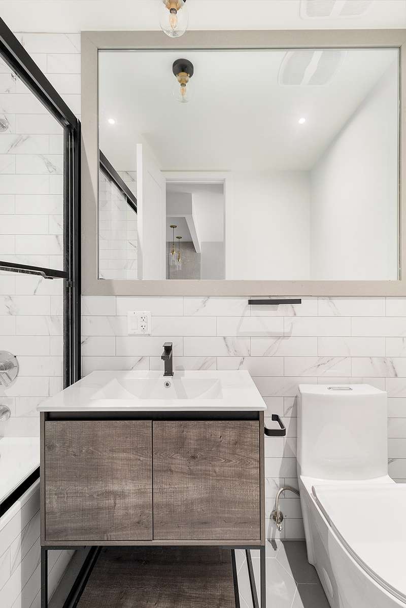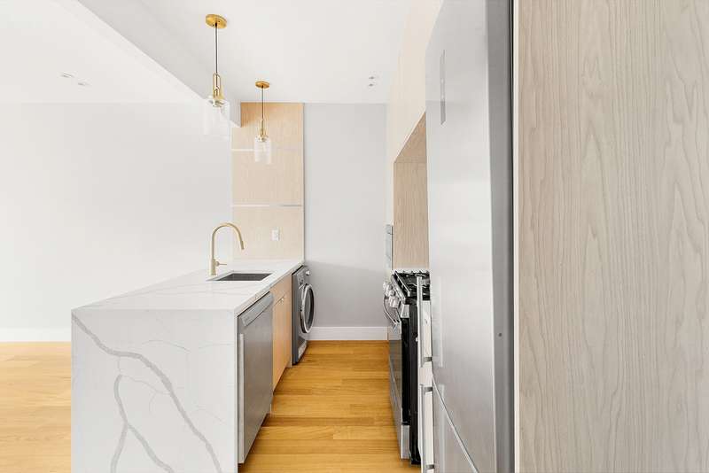 This 1 bedroom/1 bathroom apartment boasts eastern exposures, in-unit laundry, and a Juliet balcony. The kitchen is totally modern, complete with marbled countertops, a full suite of stainless steel appliances, and an island/breakfast bar. The living room is airy and bright with three bay-style windows facing east. The bedroom has ample closet space and contains a Juliet balcony overlooking the street. The bathroom features a soaking tub and coveted under-sink storage.