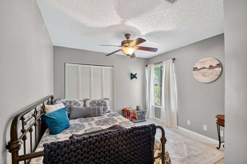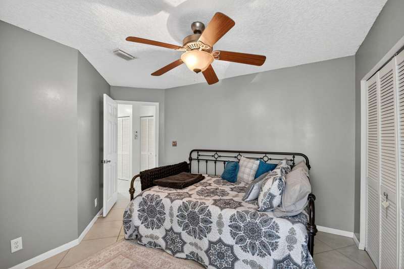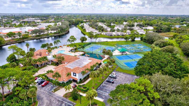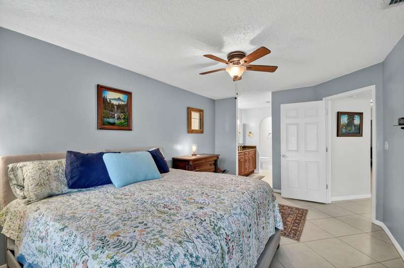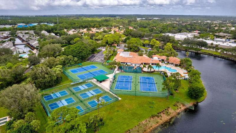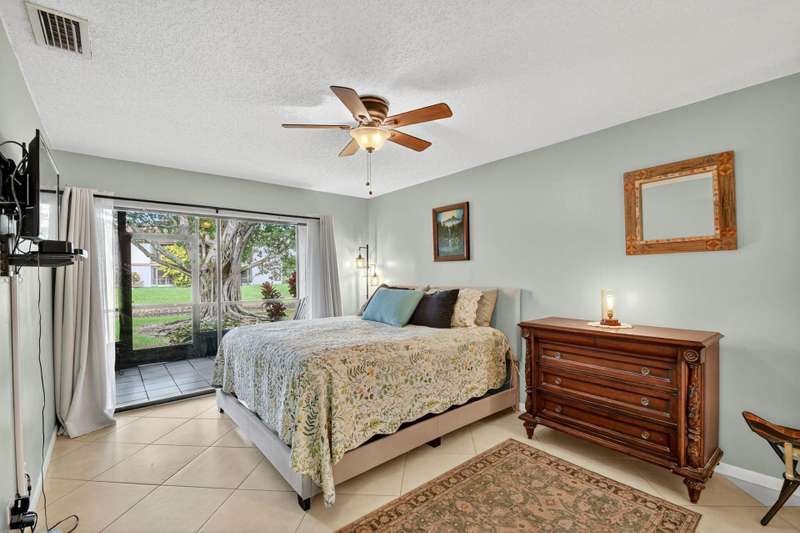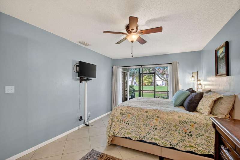 This 3 bedroom, 2 bath property has it all. Newer Roof, Newer A/C, Granite Countertops, Washer and Dryer in unit, Tile floors throughout and a screened porch to enjoy Florida Indoor/Outdoor living! Best of all are the long lake views and greensward area offering an ultra private feel. The home is located in the Resort Style community of River Bridge. Offering a choice of 3 pools, Tennis, Pickleball, Exercise trails, Gym, Basketball, Billiards, Card rooms and Theater its like being on vacation all the time! HOA includes manned Guard Gate and roving security, Full Cable, High Speed Internet, Water, Sewer, Landscaping and more!
