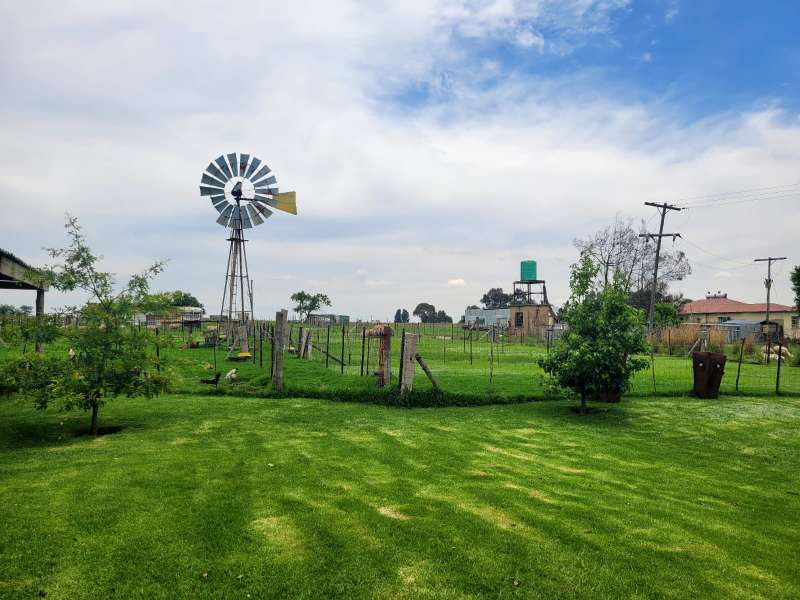 4 HA Small Holding outside Bethlehem. Fully fenced, completely off the national grid with electricity, and borehole water. Small-scale farming with sheep. Main House - 3 bedroom - 2 bathrooms - kitchen with scullery/laundry - dining room - 2 living areas - build-in fireplace - Outside entertainment area - 2 Carports - outbuildings 2nd House - 2 bedroom - 1 bathroom - open-plan kitchen with living room - thatched roof - fully fenced off - 2 carports