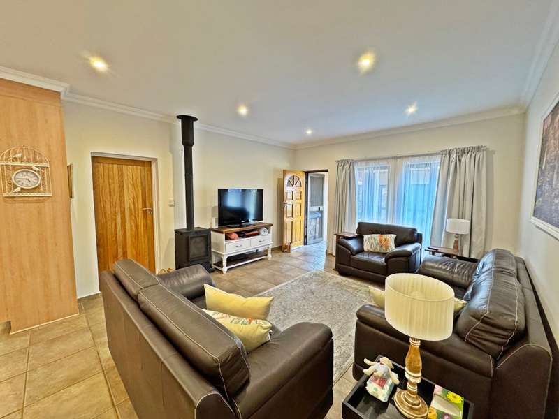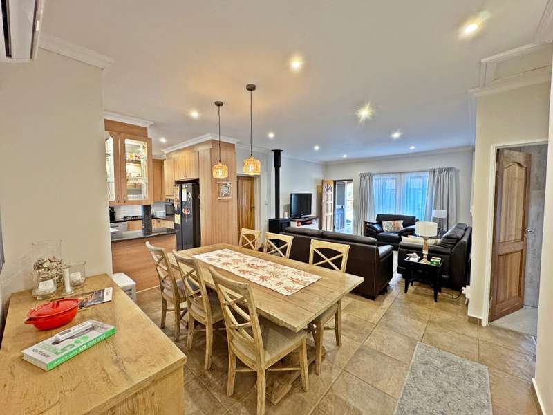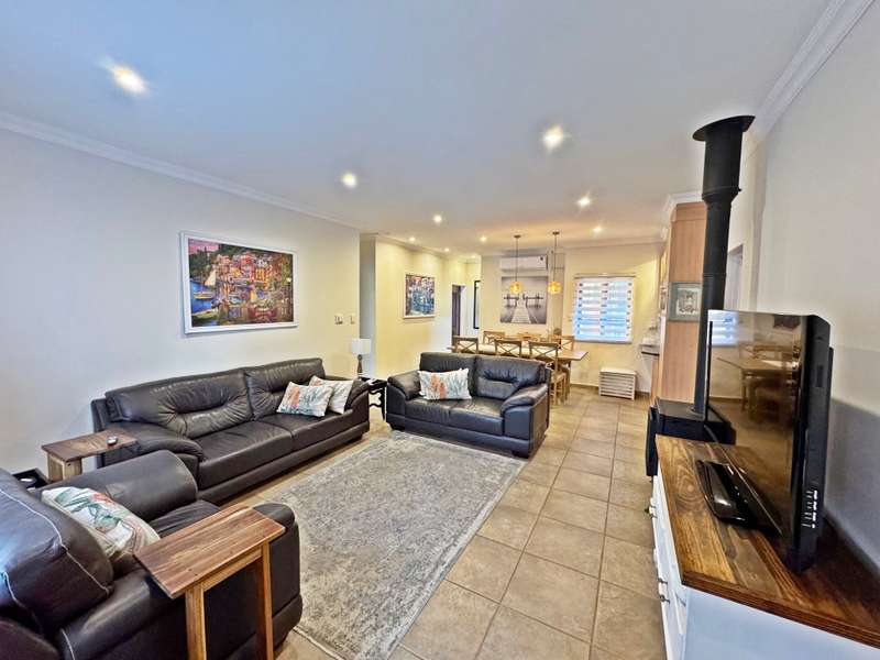 This immaculate retirement unit offers comfort, convenience, and a host of extras that make it truly special. The open-plan living and dining area is bright and welcoming, featuring both an air conditioner and a cozy fireplace — perfect for year-round comfort. The modern kitchen is beautifully finished with granite countertops, an eye-level oven, and a gas hob, ideal for effortless cooking and entertaining. The main bedroom includes an air conditioner and a full en-suite bathroom, creating a private and restful retreat. A well-sized guest bedroom and an additional guest bathroom ensure comfort for visiting family and friends. Additional highlights include: • A single garage with an automated door and built-in cupboards for extra storage • A charming enclosed gazebo with sliding doors, windows, and a ceiling fan — an ideal space for relaxing, reading, or enjoying your morning coffee • 5KW Inverter, 5KW Battery and 6 x Solar panels This move-in-ready unit is perfectly suited for a peaceful and secure retirement lifestyle.