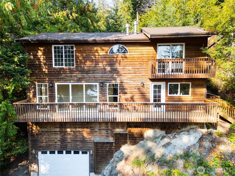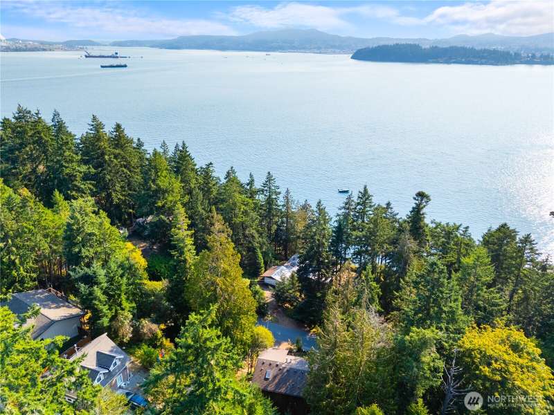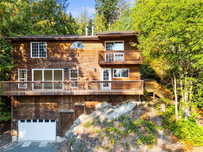 Enjoy views of Guemes Channel from your living room or one of the decks. This custom home is 2,000 sq ft with 2 bedroom plus an office and bonus room as well as 2.5 baths. Living room with vaulted ceilings and gas fireplace to enjoy. Spacious kitchen with granite coutnertops and plenty of room to entertain. Primary bedroom upstairs with view, slider out to private deck, fireplace, walk in closet and spacious bathroom. Beach access plus boat launch for all the summer fun. Guemes Island has a dedicated ferry and only 8 minutes to Anacortes. Enjoy Island time here.