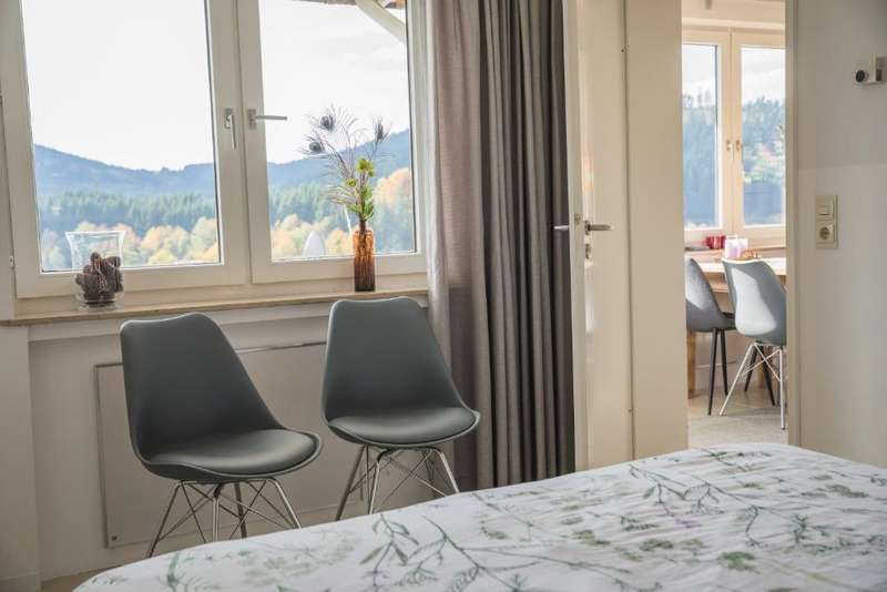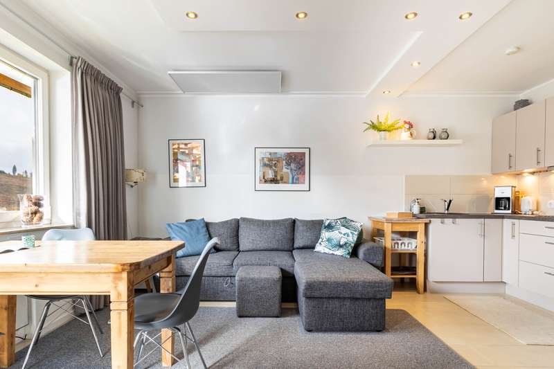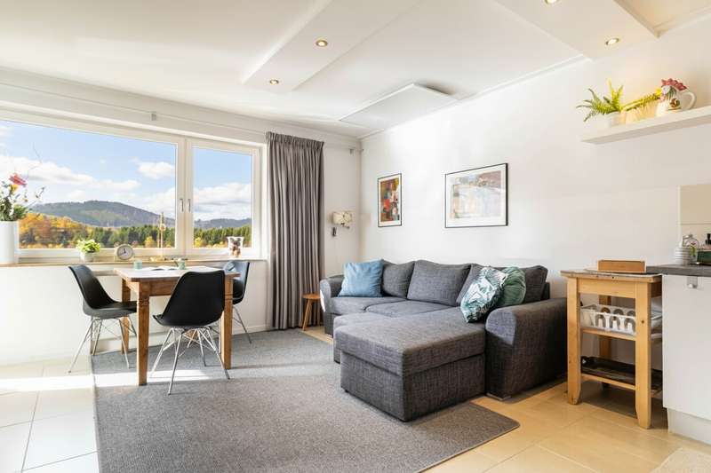 This charming apartment is located in a well-kept residential complex with 12 units. It is in a quiet location and in the immediate vicinity of the popular Nidersfeld Hillebachsee lake. The living space of approx. 42 square meters welcomes you in the entrance area, from where you can also reach the well-kept, brightly designed shower room. A few steps take you to the open and friendly living area. A modern kitchenette invites you to cook together. The large windows flood the rooms with natural light and open up a picturesque view of the lake and the surrounding mountains and forests. This panorama can also be enjoyed to the full from the covered balcony. The separate bedroom, which can be accessed via the living room, offers enough space for a double bed and a closet. Let the beautiful view greet you every morning! A private cellar room and a parking space right outside the front door round off the features of this attractive property offer. All you have to do is bring your time with you, as the furniture is already included in the purchase price.