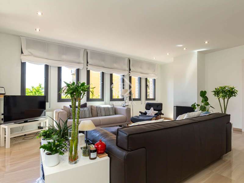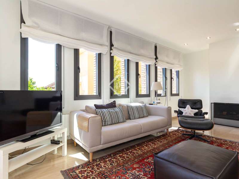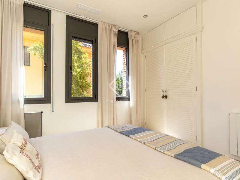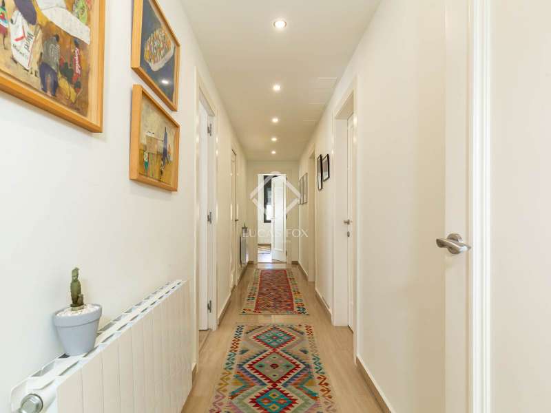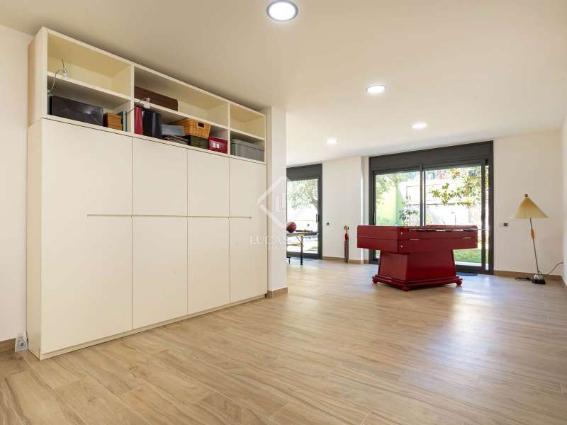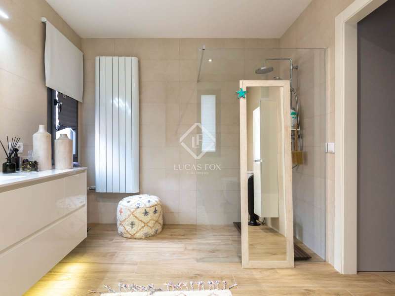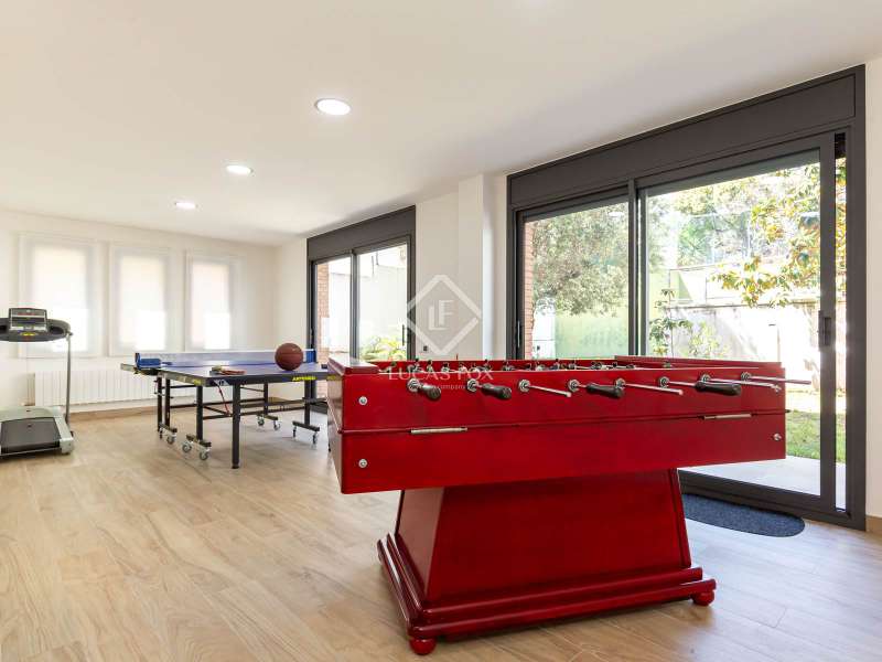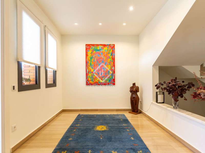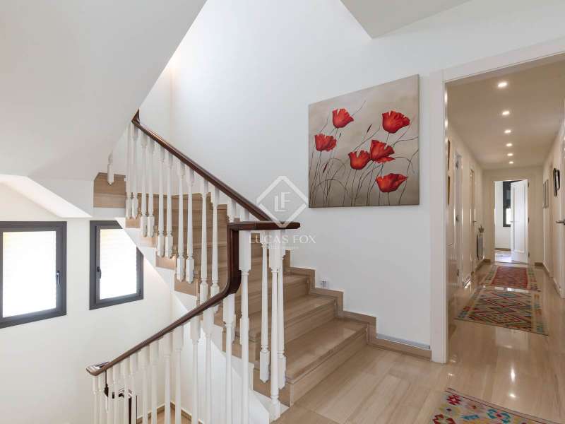 Lucas Fox presents this house located in one of the most sought-after areas of Sant Just Desvern. This spectacular single-family home underwent a complete, high-end renovation in 2018. Every detail has been carefully considered to offer maximum comfort and energy efficiency. The property has a generous surface area of 570 m² distributed over several floors connected by a hydraulic elevator and sits on a landscaped and paved plot of 931 m² to enjoy the outdoors. We access the property from the street via a staircase leading to a large south-facing terrace and a 30 m² porch. From the main entrance, we enter the spacious entrance hall, ideal for creating an additional study or reading living room , with the main staircase and elevator nearby. The entrance hall opens into a bright day area with high ceilings, featuring a living room with a fireplace , decorative wooden beams, and access to the porch. Next, there is a multipurpose room (ideal as a gym or playroom) with access to the back garden , which includes a saltwater pool and a fronton court. The floor also includes a double bedroom , a full bathroom with a shower, and a utility room. On the first floor, a hall with a staircase and elevator leads to the elegant and inviting living-dining room with a fireplace. This spacious room boasts a southwest orientation and access onto an 18 m² covered terrace. Beyond this is a large, modern kitchen diner with natural light, fully equipped with high-end appliances : Alvimodul cabinetry, a Smeg gas cooktop, a Pando extractor hood, a Bosch oven, microwave, and integrated dishwasher, as well as two refrigerators—one Whirlpool and the other a Bosch integrated model. Further along the floor is an annex laundry room with a Bosch washing machine and AEG dryer, along with storage cabinets. The night area is separated by a corridor that access to four double bedrooms (two currently used as offices), with built-in wardrobes and a shared bathroom with shower. The spacious main bedroom , facing west, completes the floor with built-in wardrobes, a ceiling fan, a large en-private bathroom with shower, and garden views. On the attic floor , a bright, sloping roof space offers three double bedrooms. One of the rooms is currently used as an study , southerly aspect and access onto a spacious 55 m² terrace with spectacular sea views. The other two double bedrooms have built-in wardrobes and access to a large 44 m² terrace overlooking the garden and pool; these bedrooms share a full bathroom with a shower. The basement floor offers a private garage with space for three cars, bicycles, and motorcycles, a storage room with a guest toilet, a utility room housing the elevator machinery and water softener, and a storage room . An adjoining wine cellar with decorative wooden beams completes the floor . The rear garden area is divided into three distinct levels. First, there is a paved exterior terrace with a chill-out area next to the house and a private fronton/tennis court. Next, on a higher level, there is a space with a saltwater swimming pool. The third level is a garden with trees and a barbecue area with a picnic table, notable for its privacy. The property features double-glazed aluminum exterior . It also has motorized blinds and a perimeter alarm system. Heating is provided by radiators with a gas-fired combination boiler (three boilers, one per floor), and ducted air conditioning with a zoned system for the night area and day area areas on the first floor and a single thermostat in the floor . In addition, there are split-system air conditioners in the ground floor bedroom and another in the attic study area, which complements the ducted system. Photovoltaic panels ensure high energy efficiency. The property also boasts two working fireplaces, marble and wood-effect porcelain tile flooring, ceiling fans in key rooms, a prime location, and unobstructed views. Contact us to discover this luxurious four-story villa with garden and pool in Sant Just.