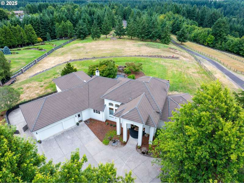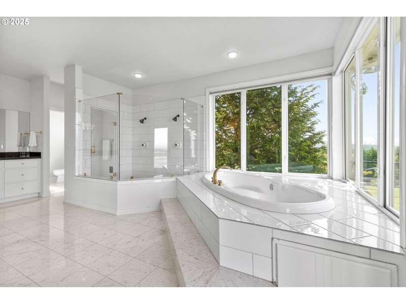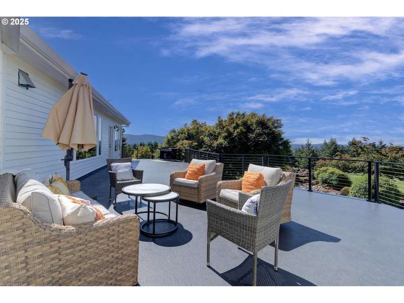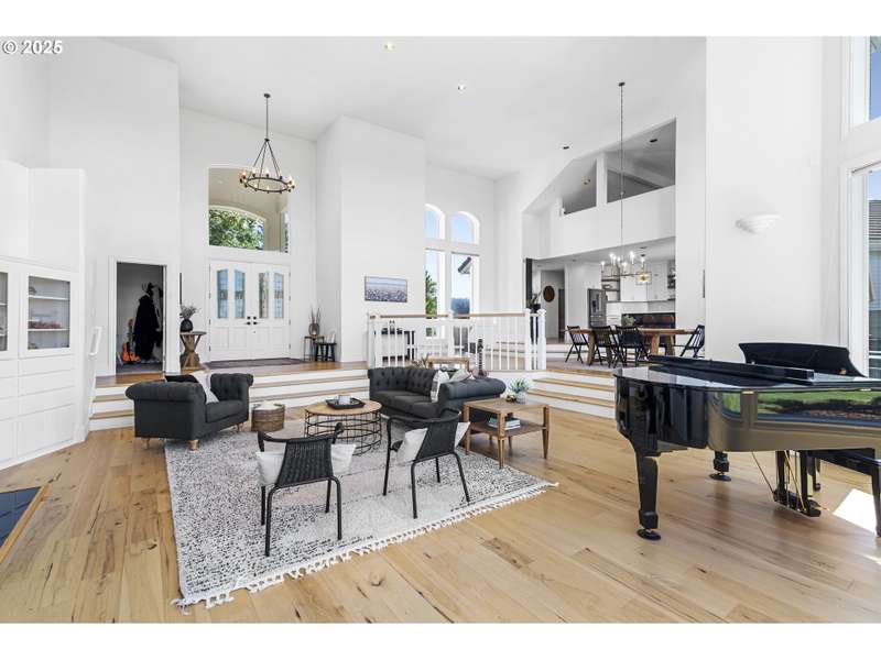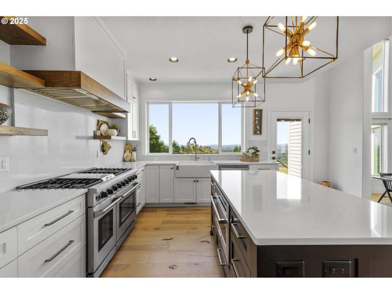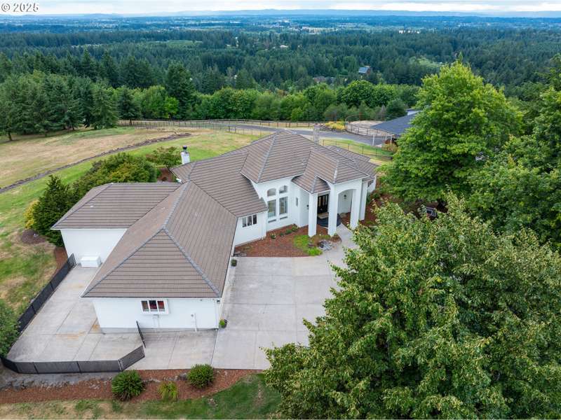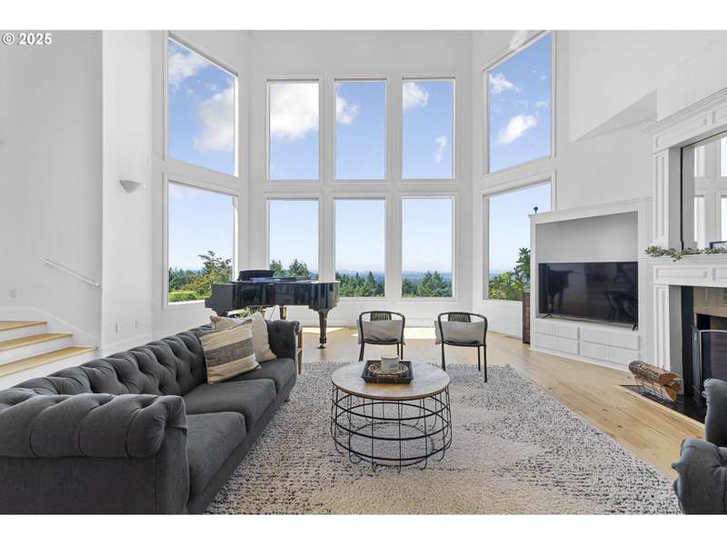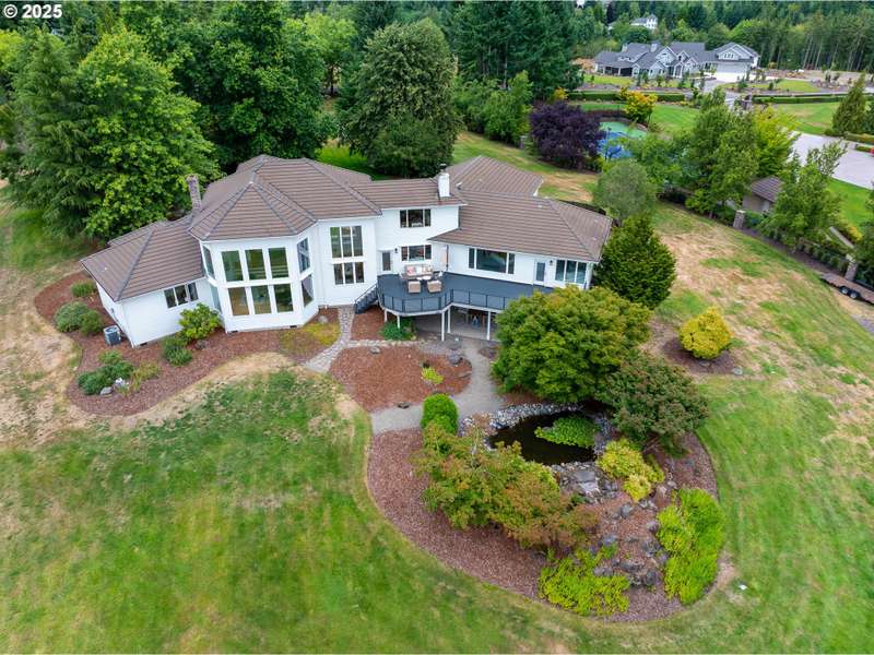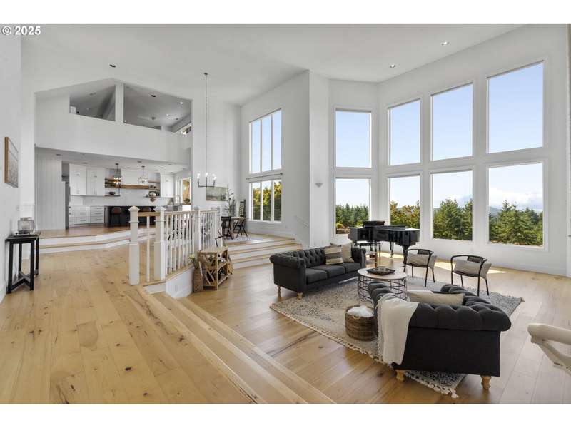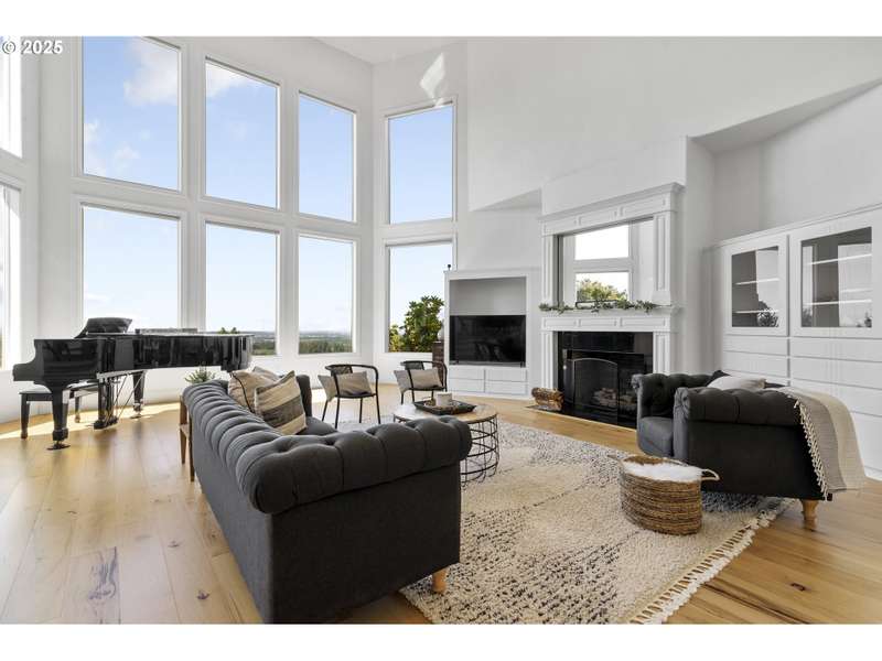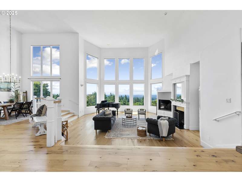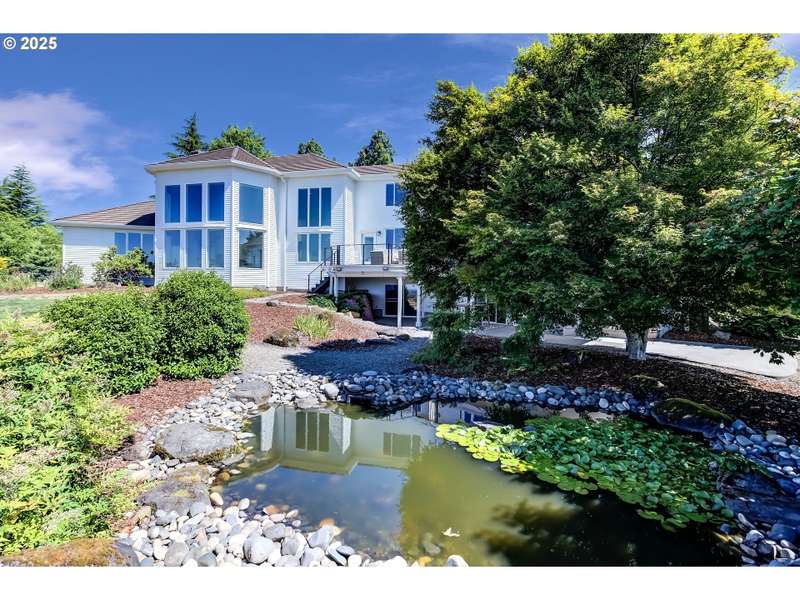 STUNNING MODERN HOME WITH BREATHTAKING VIEWS. 4 bedrooms, 3 full and 2 half bathrooms, 5678 sqft on a 5.49 acre lot in Hockinson Highlands Estates. Incredible views from Mt. Jefferson to Portland and the Portland Hills to sunsets over the Coastal Range. Grand entry opens to a two story living room w/ built-ins and a gas fireplace. Updated kitchen w/ quartz island, butlers pantry & second pantry, gas range w/ double oven & farm sink. Two story formal dining area as well. Primary bedroom on the main level w/ gas fireplace, built-ins, an enormous walk-in closet w/ two doors, jetted tub & walk-in shower. Bedrooms 2 & 3 are also on the main level w/ a shared bathroom. Upstairs is a loft/office area w/ the same sweeping views. Downstairs has a 4th bedroom & full bathroom, plus a huge bonus room w/ gas fireplace. 3 car oversized garage. Cedar siding was painted in 2020. Tile roof was recently cleaned. Expansive deck & lower patio overlook the well landscaped property that includes two water features and a huge yard that is fully fenced. Superb neighborhood on a dead-end street surrounded by multi-million dollar homes in the sought-after Hockinson school district.