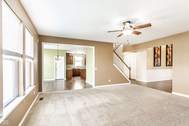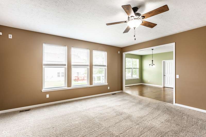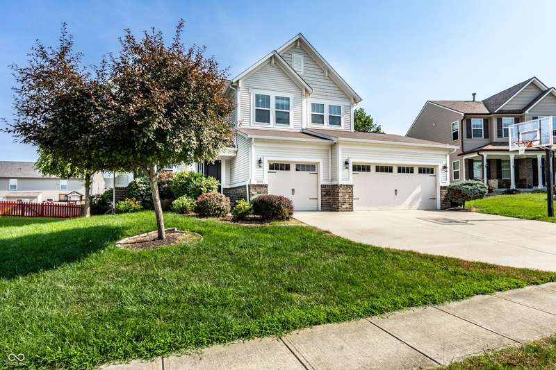 Hoping for a spacious 4-bedroom house in Center Grove schools, with room to spread out? Look no further! The circular main-level floorplan provides wonderful connection for family and entertaining, and multiple gathering areas provide opportunities for everyone to spread out - take your choice of the main-level great room with fireplace, the light-filled loft upstairs, or the basement family room. Depending upon your needs, the formal living room could also serve as an office, and the dining room could serve as a second office, or a playroom. You'll love the kitchen connecting to the breakfast room, and the huge walk-in pantry! The laundry/mud room connecting to the 3-car garage will appeal to your practical sense! Upstairs, all four generously-sized bedrooms have spacious closets, and both the ensuite primary bath and the hall bath have double-sink vanities. There's plenty of potential for further basement expansion - a fifth bedroom? A rec room/game room? Two egress windows give you two options for the fifth bedroom location, and plumbing rough-ins are in place for an additional full basement bath. The refurbished multi-level back deck provides flexibility and a great view of the large yard - the storage beneath is handy! And, the irrigations system makes your work simpler. Enjoy the newer tankless gas hot water heater - the water softening system is included! RWS Simple Warranty is in place, and is transferable to the buyer at no cost. Visit soon!