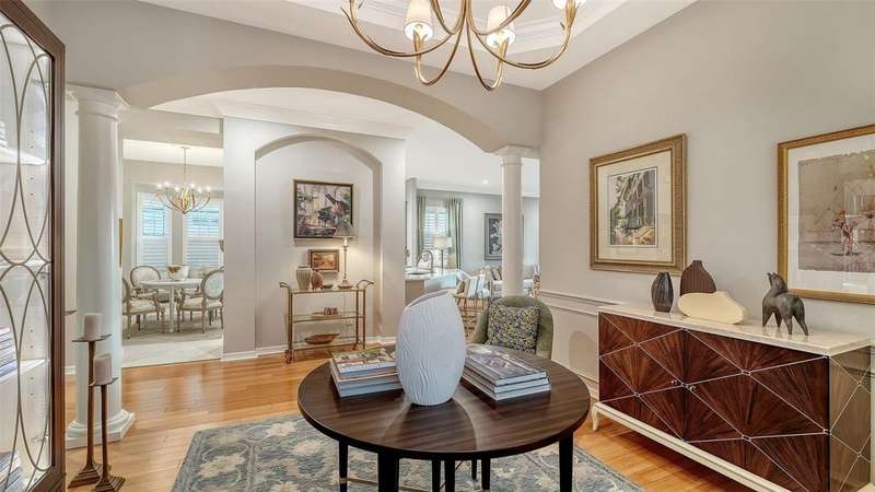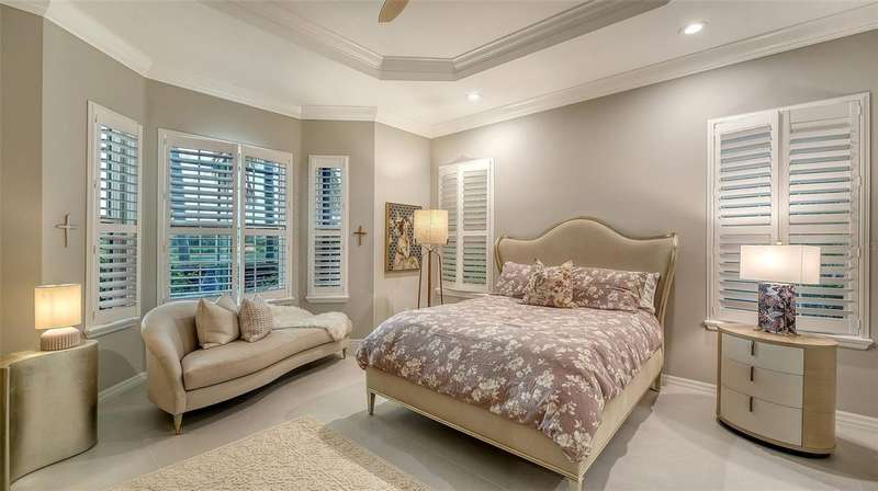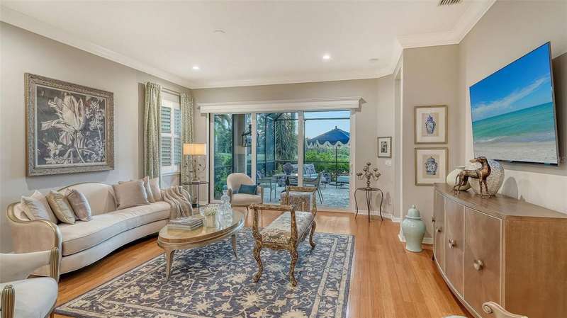A masterful renovation breathes new life into this redesigned Neal Custom Home, presenting a European-designed sanctuary in the coveted Presidio neighborhood of the park-like, sought-after, Lakewood Ranch Country Club community in the heart of Lakewood Ranch. Over $100,000 in bespoke enhancements have elevated this provincial-style traditional home to a pinnacle of timeless luxury and sophisticated living. The residence offers breathtaking, expansive views of the golf course, shimmering lakes, natural conservation, and the most magnificent sunsets imaginable. Inside, the 2-bedroom, 2-bath, plus den layout flows seamlessly with Bamboo wood and custom tile flooring throughout-a deliberate choice for elegance and ease of maintenance. The home is adorned with custom window shutters, bespoke lighting, crown molding, tray ceilings, and premium plumbing fixtures. The new gourmet kitchen is a chef's delight, featuring Caf�© appliances, custom cabinet refacing, and luminous Quartz countertops paired with marble-like tile. Both baths have been sumptuously renovated with custom tilework and new freestanding vanities, lighting, and plumbing. This residence is enhanced with high ceilings, hurricane-grade impact glass windows, and a whole-home water purification system. This home is the definition of refined comfort. Residing in Presidio grants access to a community pool and grounds maintenance, with optional Lakewood Ranch Country Club golf, social, and sports memberships available to complete the luxury lifestyle. Lakewood Ranch Country Club is within minutes to Waterside, Main Street, UTC, dining, entertainment, and shopping. Within close proximity to the beautiful Gulf beaches, airport, and downtown Sarasota, and just minutes to I-75.