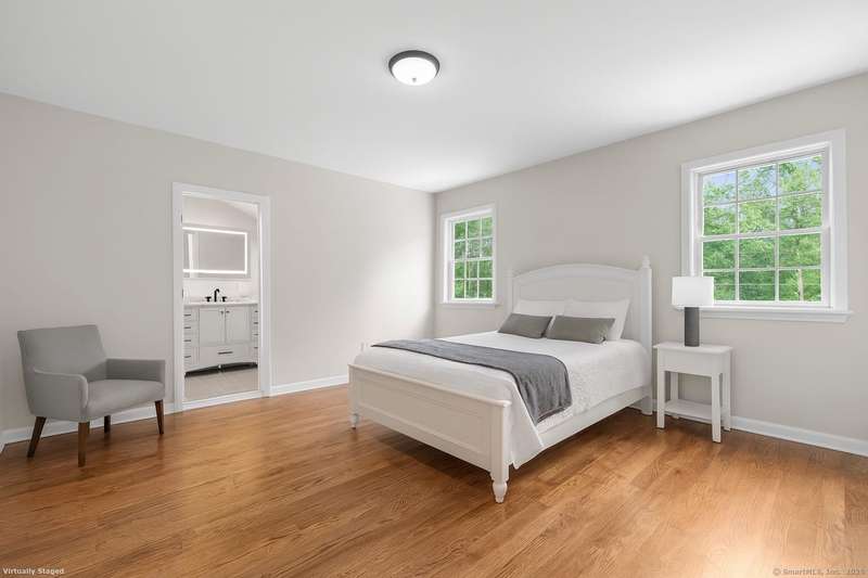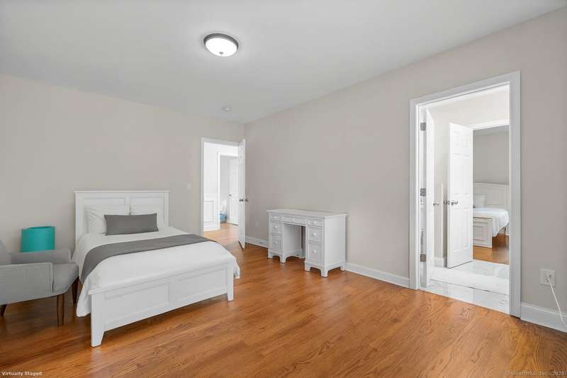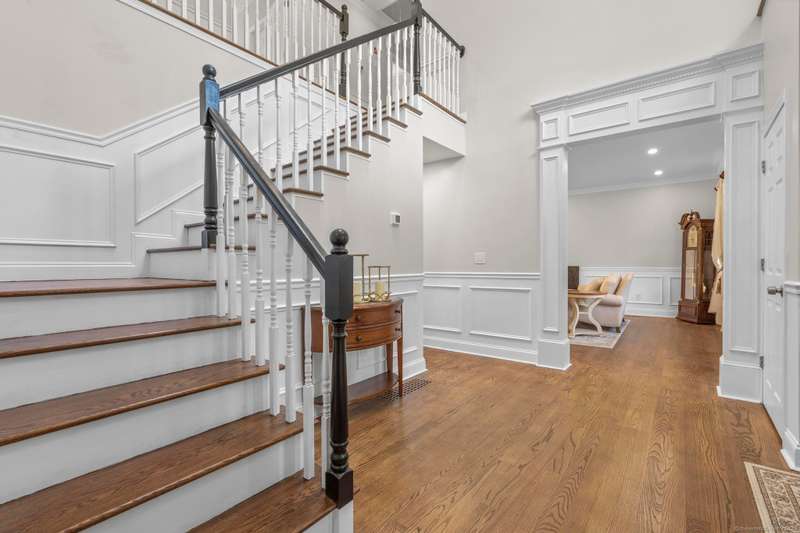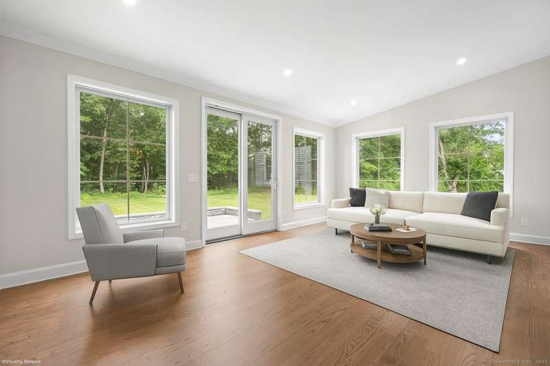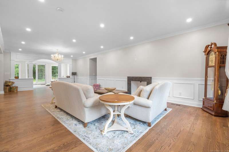 Rebuilt in 2024, this exceptional 5-bedroom, 4.5-bath Colonial is set on a level 1.1-acre lot, perfectly balancing modern luxury with comfort. A dramatic two-story foyer welcomes you to an open, light-filled floor plan. The expansive dining room is ideal for hosting gatherings, while the generous great room flows seamlessly into the chef-inspired kitchen. Designed for both function and style, the kitchen boasts a propane 6-burner Wolf cooktop with grill, convection wall oven, stainless steel appliances, an oversized walk-in pantry with custom built-ins, and a large center island with rich cabinetry. The adjoining breakfast area is framed by cased windows, filling the space with natural light and offering peaceful views of the private backyard. The spacious living and family rooms feature six oversized picture windows, creating an inviting atmosphere and showcasing the tree-lined grounds. A glass slider opens to the bluestone patio and expansive flat yard, perfect for outdoor dining, morning coffee, or evening wine. Upstairs, the Primary Suite offers a spa-like bath, complemented by three additional bedrooms, a laundry room, and two full baths. A versatile in-law style suite above the three-car garage provides a private retreat with its own bedroom, living room, and full bath. All this, located just minutes from Yale, Routes 34 & 15, shopping, dining, and in an award-winning school district-this home is the perfect combination of quality, convenience, and elegance.