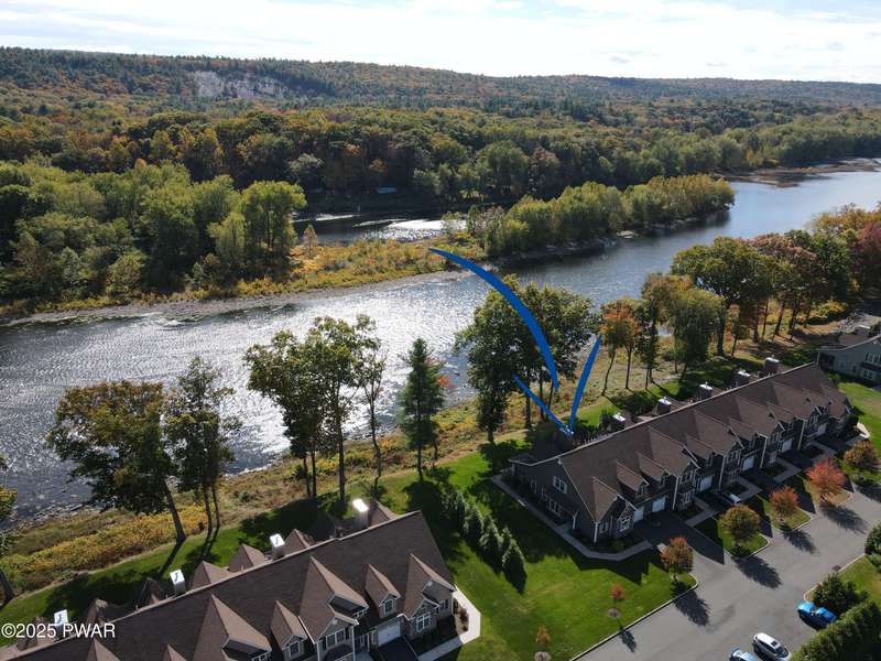 Enjoy Stunning Delaware River Views!Experience luxury living in this exceptional corner-unit townhome located in the sought-after 55+ community of River's Edge. Perfectly positioned directly in front of the Delaware River with completely unobstructed views, this residence stands far above the standard units -- every detail has been thoughtfully upgraded with premium materials and finishes, creating a truly one-of-a-kind home.The first-floor primary suite offers a spacious tiled shower and high-end fixtures, while the open-concept living area showcases breathtaking river views enhanced by a cozy fireplace and built-in Bose surround sound speakers for the ultimate ambiance. The upgraded sunroom has been transformed with full custom windows, allowing you to enjoy your serene Delaware River views in comfort year-round.Upstairs, a large loft-style living area provides additional space for relaxation or entertaining, with more panoramic river views that will leave you speechless. Every aspect of this home reflects quality and care -- from the irrigated lawn to the whole-house water filtration system plus an additional under-sink purifier for extra peace of mind. Even the bathrooms feature luxury high-end tubs and upgraded tilework for a spa-like experience.Additional highlights include a one-car garage, generous storage space on the second floor, and a location that's just minutes to I-84 and all the shopping, dining, and conveniences of Matamoras.This is riverfront living at its finest -- no expense spared, no detail overlooked. A rare opportunity to own a home where true craftsmanship, comfort, and an unbeatable riverfront setting come together.