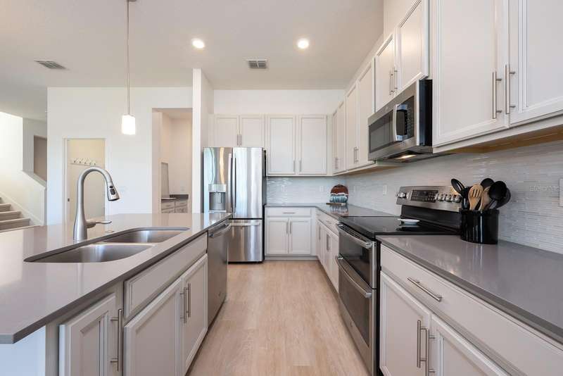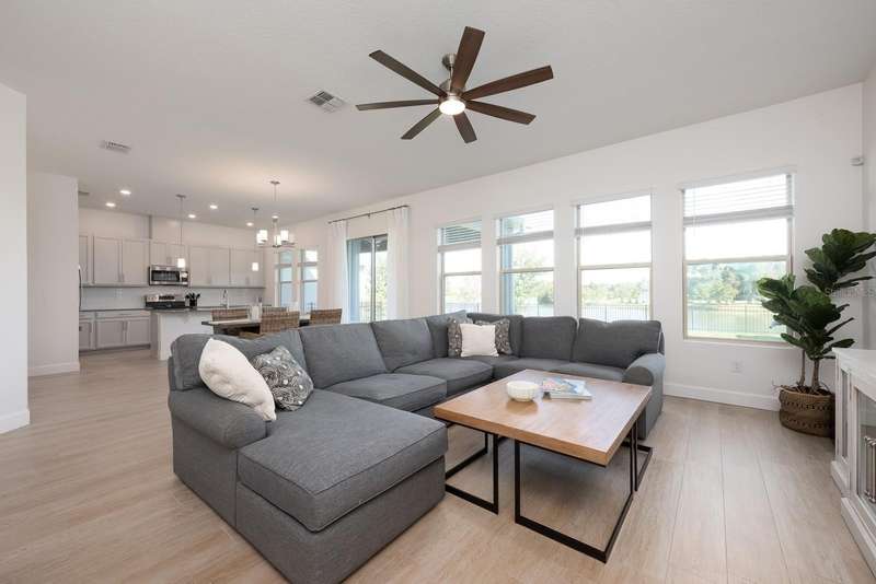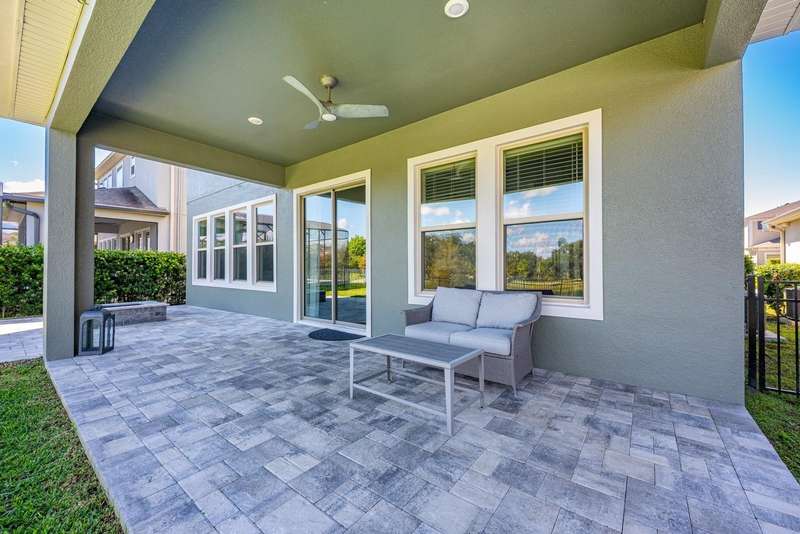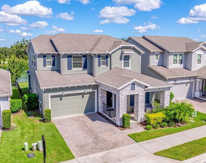 Under contract-accepting backup offers. One or more photo(s) has been virtually staged. Seller may consider buyer concessions if made in an offer ****Welcome to Tuskawilla Crossings and the perfect combination of lifestyle, location, and comfortable luxury! This immaculate, LIKE NEW 4-bedroom, 3-full and 1-half bath home sits on a premium WATERFRONT LOT offering peaceful POND VIEWS and immediate access to the WALKING TRAIL right outside your back door. BUILT IN 2019 and meticulously maintained, this home truly shines inside and out – from the fresh Benjamin Moore Aura INTERIOR PAINT (2025) to the EXTERIOR REPAINT with Loxon base coat (2025), and new carpet for the second floor (2025). The interior delivers a bright and OPEN FLOOR PLAN featuring large-format WOOD LOOK TILE flooring, a MAIN FLOOR BEDROOM with a full en-suite bath, and double-pane windows that fill every room with natural light. The chef’s kitchen is a true highlight with a fresh neutral color palette, STAINLESS STEEL APPLIANCES (new refrigerator and microwave 2024), sleek countertops, a stylish backsplash, recessed and pendant lighting, and windows overlooking the water. There is a seamless flow into the dining area and spacious living room beyond – ideal for entertaining or everyday living. Upstairs you will be pleased to find a generous BONUS/LOFT offering endless versatility for a home office, playroom, or media space. Your PRIMARY SUITE is a private retreat, complete with a decorative ceiling, large WALK-IN CLOSET, and a beautifully appointed en-suite bath. A second potential primary suite is conveniently located on the main floor – perfect for guests, in-laws, or multi-generational living – with its own full en-suite bath. Step outside to enjoy the best of Florida living with a COVERED PAVER LANAI, extended patio, and BUILT-IN FIRE PIT (2020) overlooking the serene pond. The fenced yard (2021) and well-maintained landscaping add to the home’s curb appeal and outdoor charm. Located in one of Winter Springs’ most desirable communities, Tuskawilla Crossings offers walking trails, a park, playground, a COMMUNITY POOL and TOP-RATED SCHOOLS — all just steps from your door. Shopping, dining, and the Seminole Trail are all nearby, with easy access to major roadways, airports, downtown Orlando, and area beaches. Enjoy a small-town feel with big city convenience, plus everything you could want and more in your new home and community! Call today to schedule a tour!