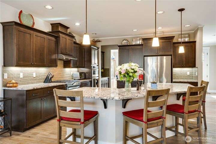 Exceptionally rare for the North End, this beautiful custom-built 2015 home blends timeless charm with today’s most sought-after features. Enjoy the open-concept design, oak floors, elegant crown molding, & abundant natural light. The chef’s kitchen boasts double ovens, soft-close cabinetry, a spacious quartz island with seating for six, a butler’s prep, & a walk-in pantry. The serene primary suite offers a fireplace, heated tile floors, & a luxurious ensuite. Thoughtful touches include a mudroom entry, modern barn-door office, & smart lighting throughout. Entertain year-round on the covered patio surrounded by lush landscaping. The oversized garage & expansive driveway feature dedicated RV parking with hookup. This is a one of a kind home!