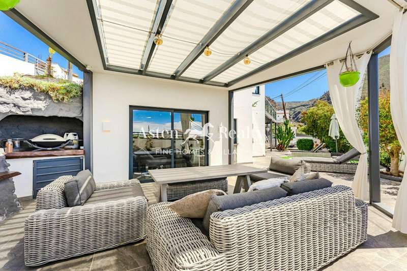 This stunning property is located just a couple of kilometers from Guía de Isora, in a unique location among the mountains, tucked away from the road and just 15 minutes from Costa Adeje and the famous cliffs of Los Gigantes.