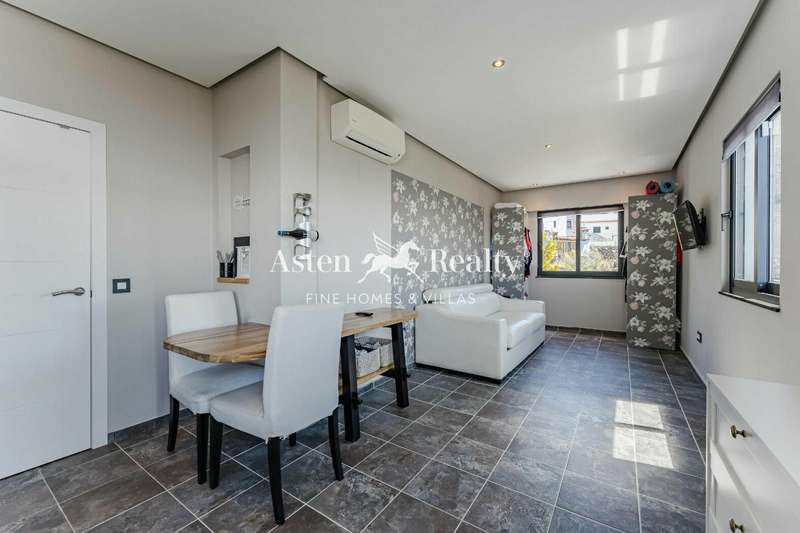 On the same floor, the house has a guest apartment with a living/sleeping area, a small kitchenette, a bathroom, and a balcony accessed via a separate entrance.