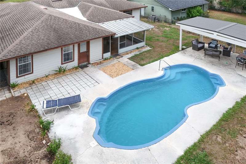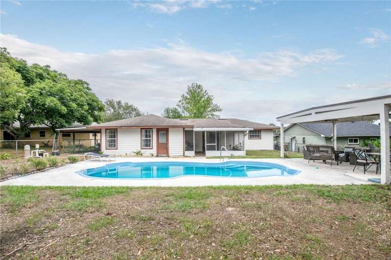 Welcome to this beautifully maintained 3-bedroom, 2-bathroom home nestled in one of Eustis's most sought-after neighborhoods. Offering the perfect blend of comfort, functionality, and outdoor living, this residence is ideal for families, entertainers, or those seeking a versatile living space. Step inside to discover a spacious open-concept living and dining area filled with natural light-perfect for gathering and entertaining. The living space flows seamlessly into a tranquil screened-in porch that overlooks your private swimming pool and expansive backyard oasis. Enjoy relaxing or hosting guests under the large cabana-style pergola, fully equipped with electricity-ideal for outdoor dining, parties, or simply unwinding. Inside, you'll find generously sized bedrooms, including an oversized primary suite featuring a large ensuite bath and convenient attached laundry/mudroom for added functionality. A bonus multi-purpose room offers endless possibilities-whether used as a playroom, homeschool space, guest room, or in-law suite-with its own private exterior entrance for added privacy and flexibility. The fully fenced backyard adds privacy and peace of mind for pets and family fun. Major updates include all-new piping completed in 2024, durable new Hardie board siding, and a brand-new hot water heater. Just three minutes from vibrant downtown Eustis, you'll enjoy an exciting mix of new dining spots, local shops, and picturesque views of Lake Eustis. 10-15 minutes from Downtown Tavares and Downtown Mount Dora. One hour from Orlando theme parks. Don't miss your chance to own this move-in-ready gem that blends comfort, character, and convenience!