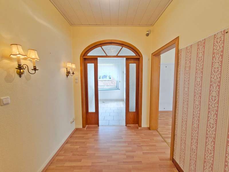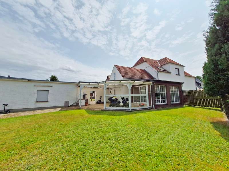 This charming 1-2 family house, built in 1934 in solid solid construction, is looking for a new owner. With the generous plot of land of approx. 842 m², a living space of approx. 181 m² and additional usable space of almost 97 m², this house is ideal for families looking for plenty of space. The house has a total of eight rooms, including four bedrooms - perfect for large families or multi-generational living. Two functional bathrooms provide comfort in everyday life: on the first floor there is a bathroom with shower and washbasin, complemented by a separate WC in the hallway. An inviting gallery with access to the balcony awaits you on the upper floor. In addition to a total of 3 possible bedrooms, there is also a bathroom and further expansion potential for a kitchen, a study or a large spa bath, for example. This means that the upper floor could also be used as a separate living unit for parents or children. The heating system was renewed in 2005 and reliably provides cozy warmth. A special highlight is the conservatory, which was added in 1985 and provides a light-flooded and pleasant atmosphere all year round. The low-maintenance garden with a covered terrace and veranda invites you to relax and linger outdoors. There is a large garage with space for 4 vehicles, which is accessible from both the courtyard and the garden. The cellar under the main house offers additional storage space and a variety of uses. Despite the quiet location, the house is well connected to the modern infrastructure, including fiber optic connection for fast internet connections. The building is in need of modernization, but offers enormous potential to upgrade it according to your own ideas. The stable, white plastered structure forms a solid basis for individual design measures. Arrange a viewing appointment now to see for yourself the many possibilities this property offers. Take the opportunity to acquire a house with history and future potential. We will also be happy to provide you with a virtual tour of the house.