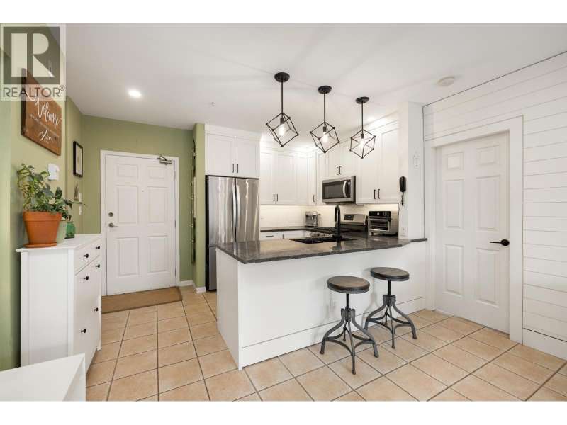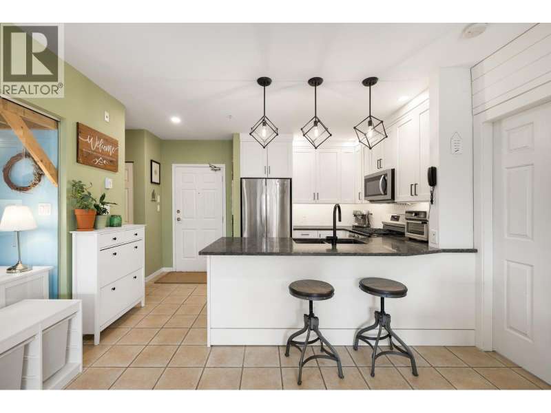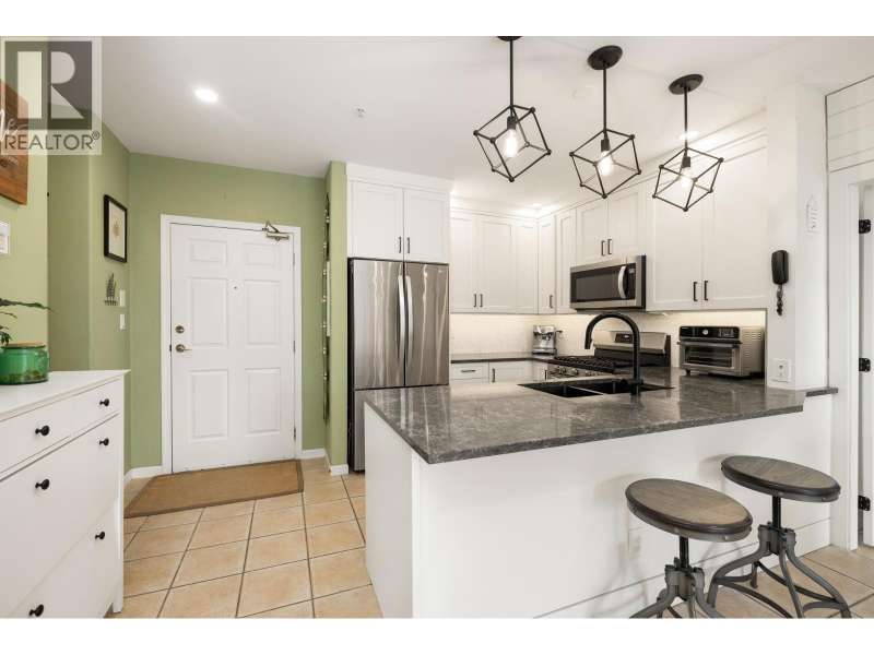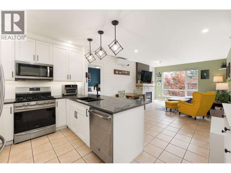 Exciting opportunity at Deerfield by the Sea! This stylishly updated 2 bdrm + glass-walled den, 2 bath home offers 961 sq/ft of bright, air-conditioned living. Enjoy renovated, open kitchen with bar seating, updated baths, gas fireplace, and large windows framing a peaceful, south-facing treed view. Bedrooms are smartly separated for privacy, and the den is perfect as an office, nursery, or guest space. One floor above ground-safe and elevator-free access! Covered balcony ideal for year-round BBQs. Walk to the beach and rec/gym facilities. In-suite laundry, 2 parking, storage locker. Rentals & pets welcome. Leasehold prepaid to 2095. (id:58403)