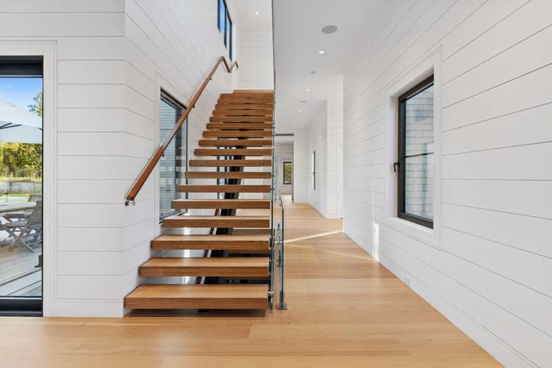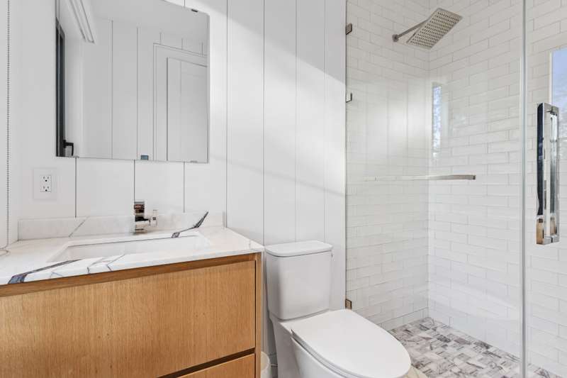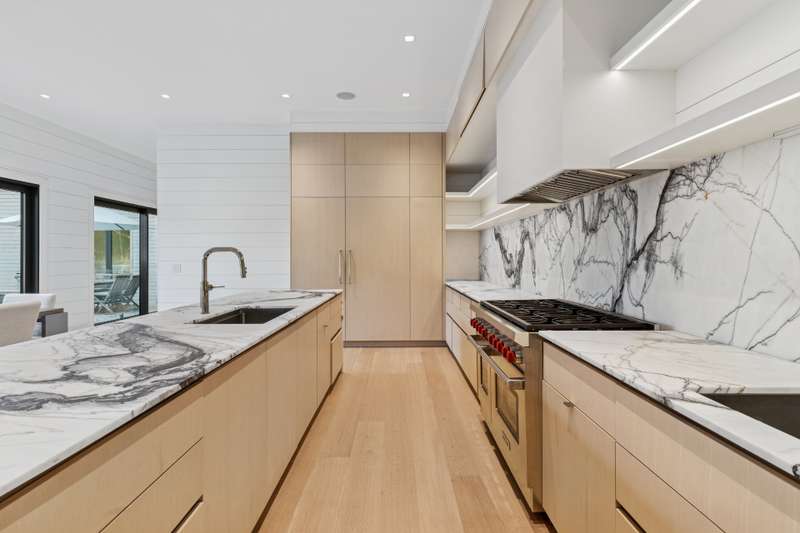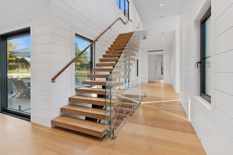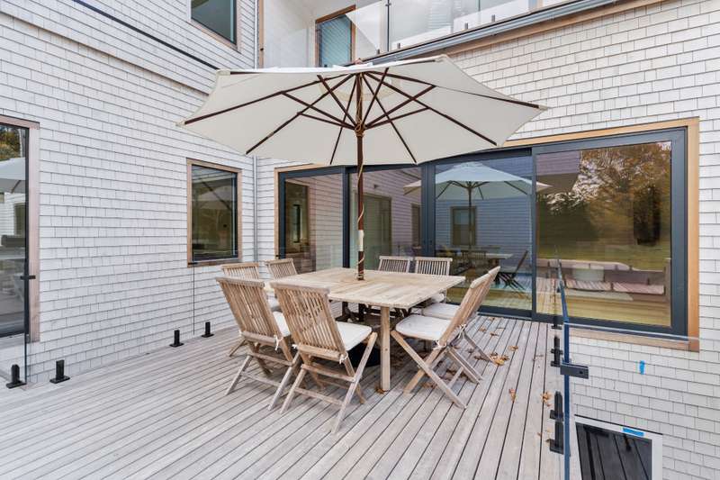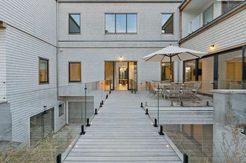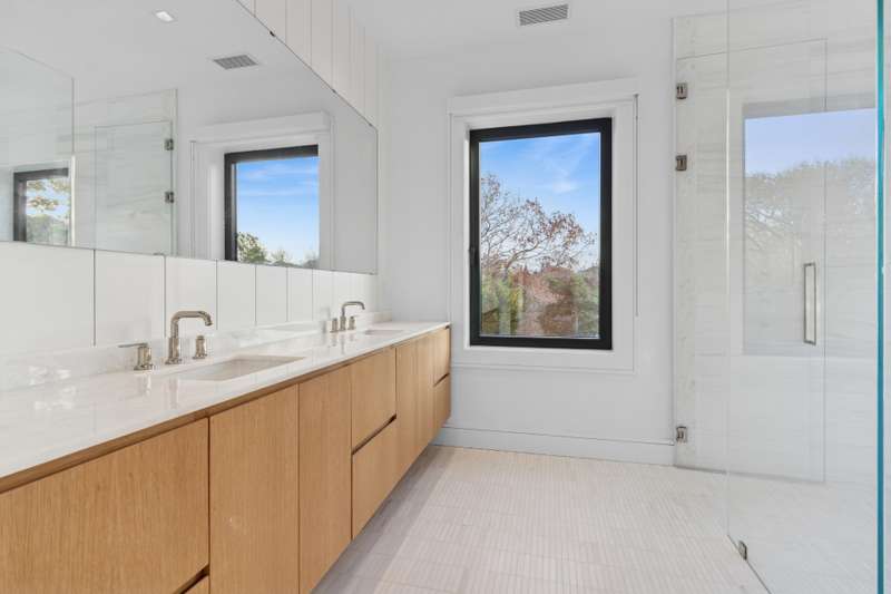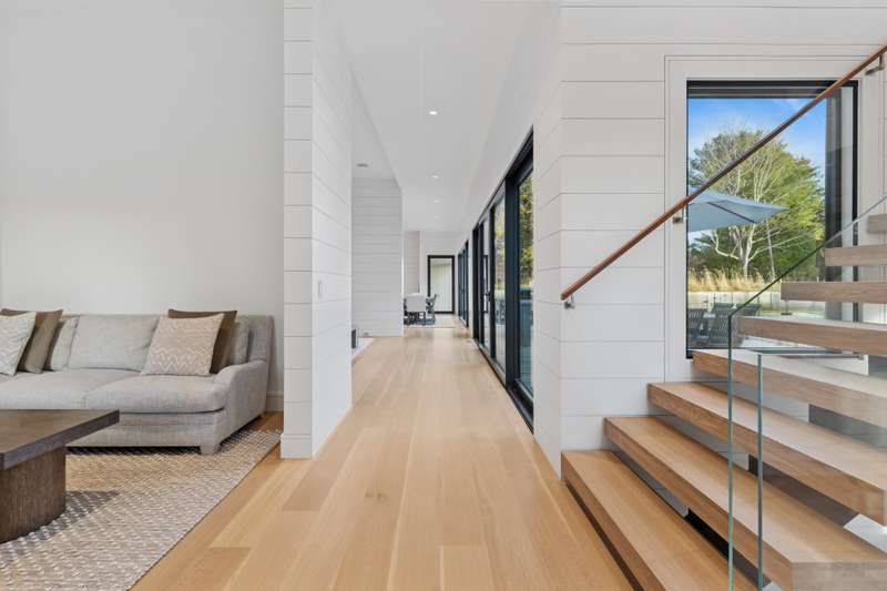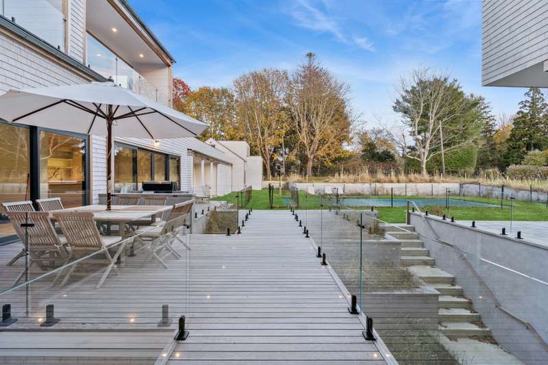 This new construction, a custom-designed home spanning approximately 7100 sqft, features 7 bedrooms and 6.5 bathrooms, sitting on just under an acre, located south of the highway in the Village of East Hampton. The home includes a 2,000 square foot finished lower level with terraced walkouts leading to an outdoor patio. An 18x46 gunite pool, surrounded by Marmuro marble and Ipe decks, will serve as a stunning focal point. The design emphasizes large, oversized picture windows, ensuring that all bedrooms and living areas maintain a clear view of the expansive yard. Energy-efficient mechanical systems throughout are designed with sustainability in mind. The home is equipped with natural gas, town water, and built-in automation for convenience and modern living.