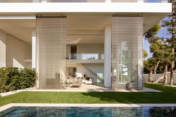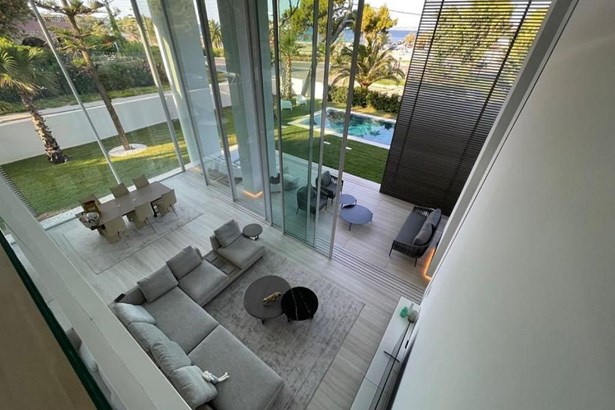 One of the standout features of the property is the large garden, measuring 338 square meters in total, which offer unobstructed sea views and include a 44 square meter swimming pool.