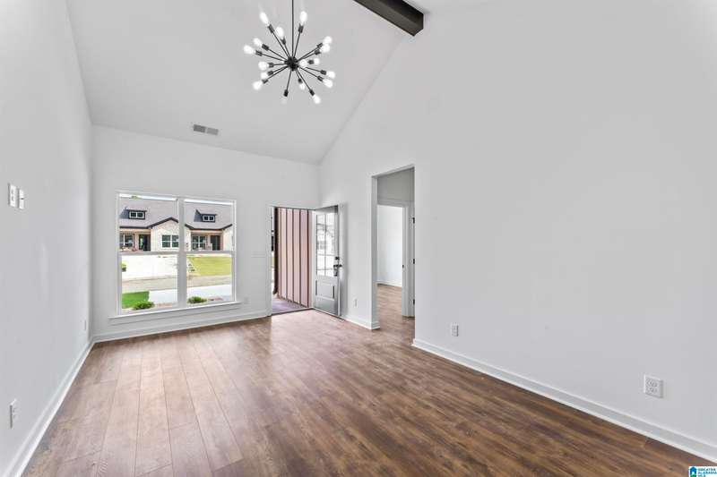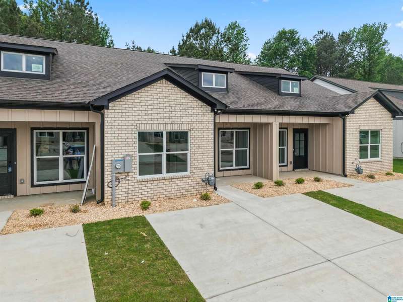 Brand new one level townhomes in Cottages of Saratoga in Calera with tons of upgrades! 159 Winners Circle provides modern, streamlined-living with minimal maintenance. You'll immediately notice the spacious driveway, private front porch and brick exterior. The ceilings are 9ft+ and there's stunning hardwood laminate floors and tile throughout. The ample natural light is accented by stunning designer lighting and neutral tones. In the kitchen, there's granite countertops, a tile backsplash and stainless steel Whirlpool appliances--gas stove, microwave and FRIDGE included. In addition, there's a brand new Whirlpool washer and dryer set included. All 3 bedrooms are fantastic spaces outfitted with great storage. BOTH bathrooms have granite countertops and oversized tile showers. There's dual vanities in the primary, private water closet, and additional storage. Step outside to your backyard with private patio space and additional storage closet. Schedule your showing today!