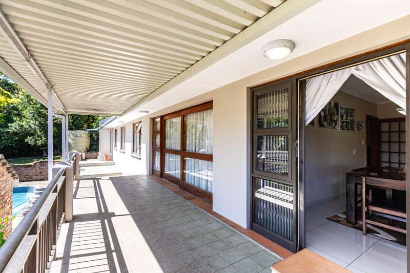 This exquisite family residence harmoniously blends comfort and practicality, offering an expansive open-plan design that effortlessly integrates the lounge, dining, and family room?Çöeach designed to foster connection and warmth. The family room, enhanced with air conditioning, seamlessly extends into the contemporary kitchen, making it an ideal space for those who delight in shared moments. A secluded hallway leads to four well-appointed bedrooms, each exuding a serene ambiance, while the main suite boasts a private dressing room and an opulent en-suite bathroom. A newly renovated family bathroom complements the sleeping quarters, while elegant laminate flooring enhances the inviting atmosphere. Step onto the expansive undercover balcony to indulge in breathtaking valley vistas, perfect for savoring your morning coffee or evening sun downers. Below, a meticulously maintained garden encircles a sparkling pool, accompanied by a dedicated pool room - an Entertainer's dream. Practicality meets sustainability with a four car garage, a separate helper's room with an en suite, a solar geyser, an inverter, and a water tank, to efficiently regulate water consumption for the garden and pool Nestled in a tranquil suburb with picturesque valley views and close proximity to the river, this remarkable property offers a rare synthesis of serenity and modern convenience, making it the ultimate sanctuary for discerning homeowners. Contact me today to arrange a private viewing of this exceptional home