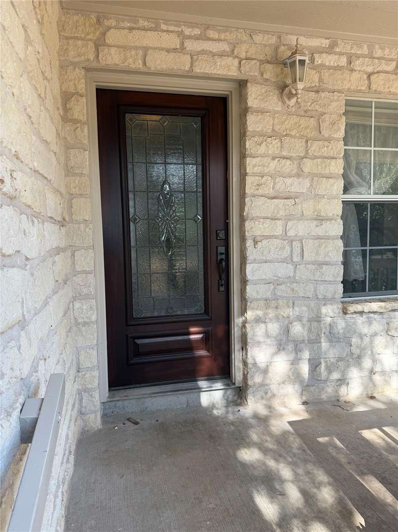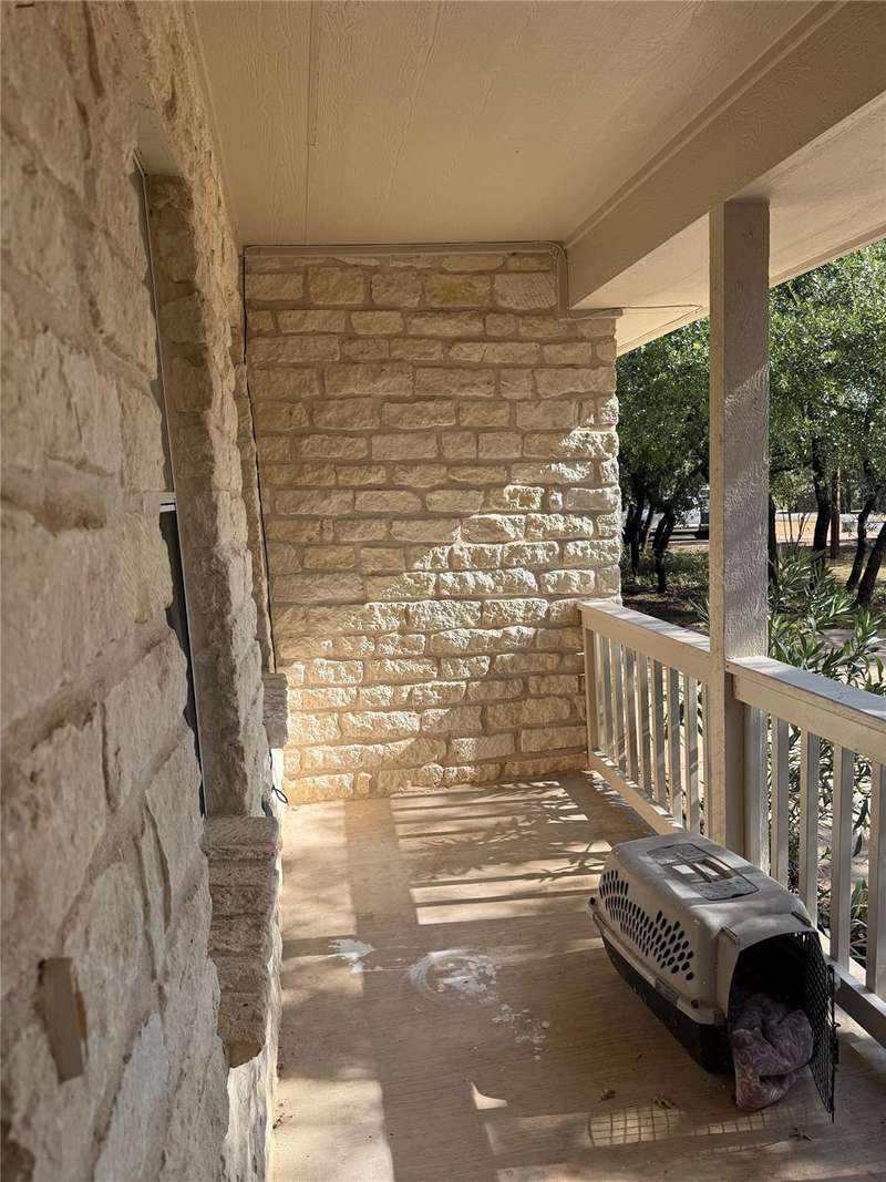 Stone and siding single story home with a house that sits in the middle of the lot. Large front yard and long driveway. Backyard porch with potential for outdoor fireplace and tall trees and natural vegetaion for privacy.