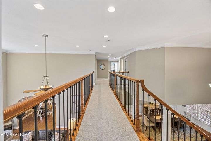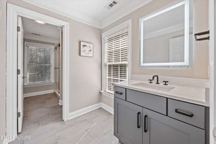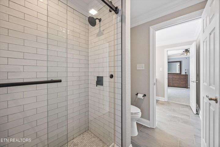 Experience refined living in this stunning 6-bedroom, 6-bath home offering over 8,300 sq ft of thoughtfully designed space in West Knoxville's Farragut area. The main level provides everyday convenience with an updated kitchen featuring modern finishes, a spacious primary suite, an additional bedroom and full bath, an office, laundry, and a 3-car garage. Upstairs, you'll find three bedrooms—each with its own bathroom—along with two versatile bonus rooms and a walk-up attic for additional storage or creative space. The finished basement expands your lifestyle options with a theater room, living area, an additional room ideal for a gym or guest suite, and a 4th garage bay, perfect for extended living or entertaining. Outdoor living is a highlight with a screened-in porch and open deck overlooking a backyard that combines a grassy area for play or gardening with a wooded backdrop for privacy and relaxation. Located in a welcoming community with a pool, clubhouse, tennis and pickleball courts, and a playground, this home offers both recreation and comfort. Zoned for highly ranked Farragut schools and conveniently close to parks, shopping, and dining, this property blends space, function, and style in one of West Knoxville's most desirable areas.
