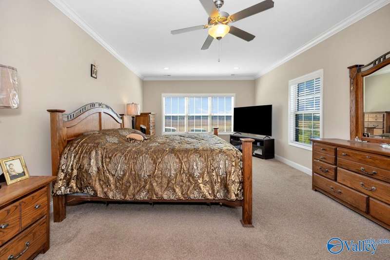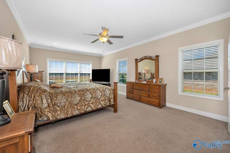 Situated on a large private lot, this gorgeous home is in exemplary condition & LOADED w/ custom detail & design thru-out, including hardwood/ceramic tile flooring, elegant fixtures, crown molding, beautiful WAINSCOTING, custom cabinetry, built in's, backsplash, GRANITE, stainless app's & more. OPEN FLOOR PLAN, kitchen w/ large island, breakfast area & FORMAL DINING ROOM. Home offers a DROP ZONE AREA, ISOLATED master suite is ON MAIN LEVEL & all bedrooms are very spacious (offering GUEST RETREAT/INLAW SUITE) & home also offers a loft (would make the perfect OFFICE space) & a BONUS/REC/MEDIA/EXERCISE room. Home offers tons of storage & is convenient to shopping, dining & the interstate.