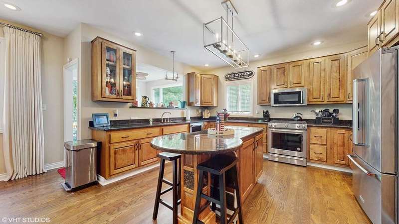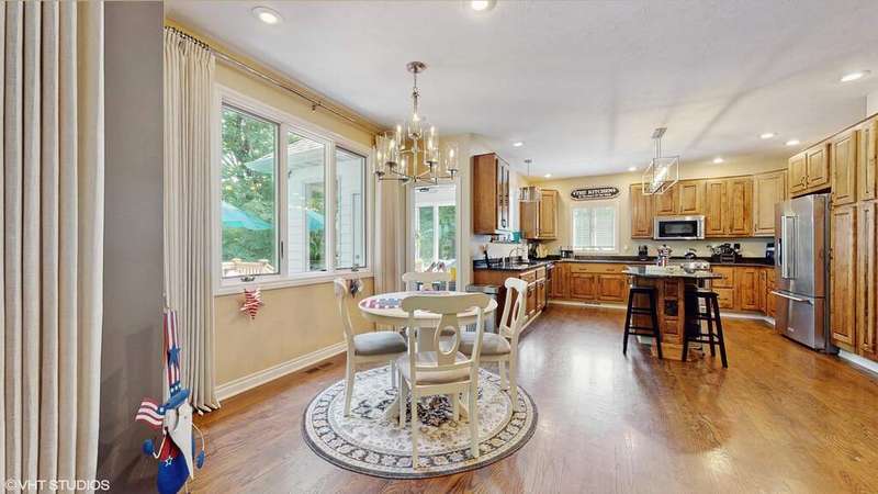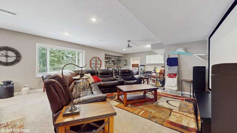 This stunning home has luxurious living on three levels and offers nearly 4700 sq feet of finished living space with 5 bedrooms, 4 full and 1 half baths. The open great room has high ceilings and tons of light. The chefs kitchen features newer KitchenAid Appliances, a large granite island and custom mahogany cabinets. The first floor also features a stunning sun room, primary bedroom suite, large office/den, a half bath and laundry. The second level has 3 additional bedrooms and two more bathrooms. The lower level is an entertainers dream, with a pool table, and large home theater area, full bedroom, bath and gym space. Your walkout lower level leads to an outdoor kitchen and spa. with a patio area, new deck and meandering path through the woods to your private St Joseph River frontage.