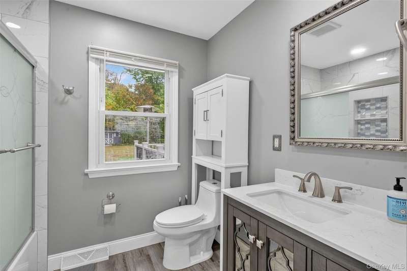 Welcome to 233 Ridge Rd! This is a great starter home with tons of potential. This charming cape has many major updates already completed, giving you the perfect opportunity to add your own personal touch. Located in Minisink Valley Schools and conveniently across the street from Hansen Park, you'll love the setting.Inside, the home features a main-level bedroom and full bathroom, plus a bonus office space. Hardwood floors run throughout, a feature that's harder and harder to find these days. The kitchen was tastefully updated in 2019 with granite countertops and quality stainless steel appliances. Off the kitchen, you'll find a laundry room and pantry, a setup that makes everyday living a breeze. The living room offers a cozy wood burning fireplace, creating a warm and inviting focal point. Both bathrooms were updated with modern finishes in 2020, so all of your heavy hitters in terms of upgrades are already taken care of. Upstairs, you'll find two additional bedrooms and another full bath. A formal dining room flows seamlessly to the back deck. The spacious Trex deck was added in 2024, creating the perfect spot to relax or entertain when the weather is nice. The level backyard offers great potential to make the outdoor space your own. An attached one-car garage with a full attic provides plenty of storage. Other updates worth noting: gutters and second-floor windows were replaced in 2024, and the siding was completed in 2007. Water softener and UV light whole house filtration system for added water quality. Don't miss your chance to make 233 Ridge Road your own... schedule a showing today and bring your vision to life!