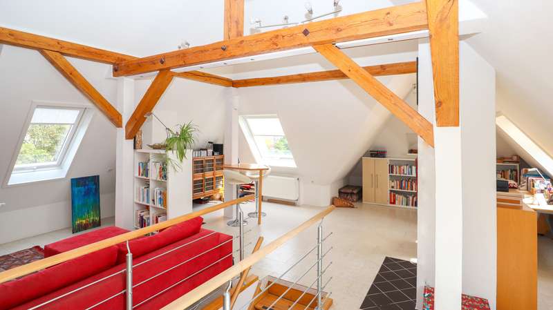 +++ Please understand that we can only answer inquiries with COMPLETE personal details (complete address, phone number and e-mail) +++ Stylish apartment in a historic villa with a large garden in a quiet location. This unique apartment extends over two floors in a magnificent, historic villa and offers a harmonious combination of classic elegance and modern luxury. As you enter the apartment, you are greeted by a stylish living area with antique details and a fireplace, which creates a cozy atmosphere and invites you to spend cozy evenings. The spacious kitchen is well equipped. Here you will find plenty of space for your culinary creations. The adjoining living/dining area offers space for convivial meals with family and friends. The apartment has several rooms that can be used flexibly as bedrooms, studies or guest rooms. A whirlpool in one of the two modern bathrooms is ideal for wellness lovers and invites you to relax. There is also a guest WC. The spacious garden is a paradise. Enjoy the peace and quiet and the beauty of nature by the idyllic pond. The large outdoor seating and barbecue area is perfect for summer parties and relaxed evenings in the open air. This apartment offers you a unique living experience in an exclusive location. Experience the perfect mix of historical flair and modern comfort.