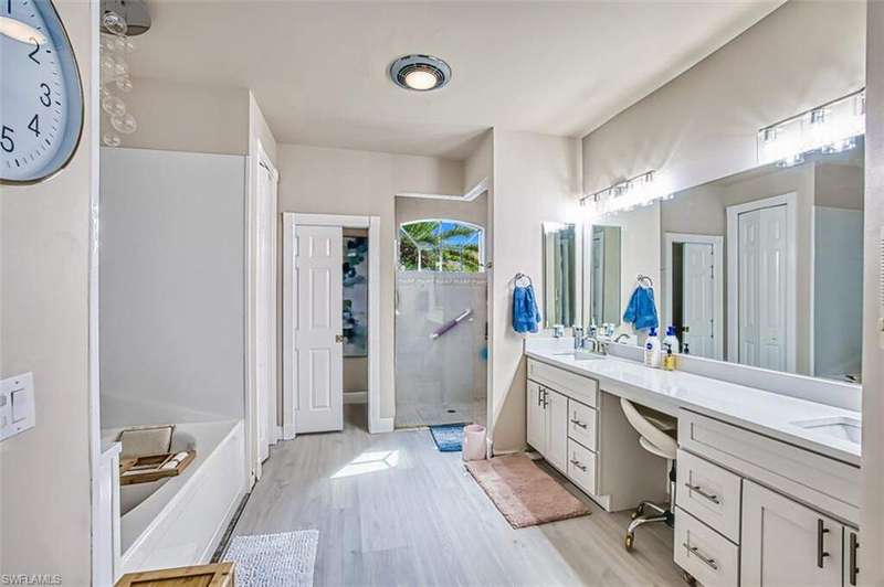 Only 20 Minutes to Sanibel and Captiva Islands as well as Ft Myers Beach you can Relax and enjoy your evening beverage looking out over the pool and enjoy the long lake views and the sunsets in Southwind Preserve! This stunning single family home boasts 4 bedrooms, 3 bathrooms, and a 2 car garage, providing ample space for you and your family. The home complete with a WHOLE HOUSE GENERATOR, Solar pool heater and an electric pool heater. The recently remodeled Kitchen features quartz countertops, wood cabinets, stainless steel appliances, luxury vinyl flooring, modern lighting, whole house intercom/stereo system all creating a modern and inviting atmosphere. The recently replaced lanai enclosure features a picture window overlooking the lake and fountain provides peace of mind and added luxury. Home has electric and accordion storm shutters so, you can rest easy knowing your home is safe and secure during storm season. Tile roof was replaced in 2018. New AC and pool heater in 2024. Southwind Preserve is located close to the Health Park Hospital, Down Town District, fine dining and shopping, our international airport, I75 and so much more. See attached list of upgrades