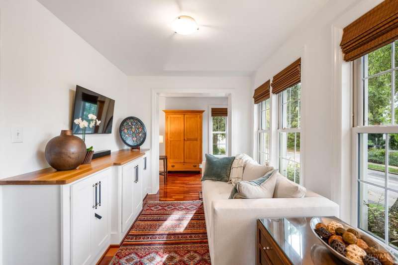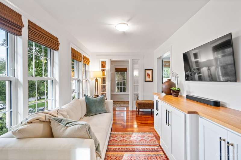 Experience quality craftsmanship & unparalleled features in this pristine home, perfectly positioned in a quiet, walkable neighborhood near Ault Park, Hyde Park Square, & Mt. Lookout Square, just minutes from Downtown Cincinnati. Inside you'll find an open floor plan with new hardwood floors, a Rockwood gas fireplace, & custom finishes throughout. The renovated kitchen impresses with Bosch appliances, a stylish tile backsplash, & a spacious pantry. A convenient first-floor bedroom & full bath add flexibility, while the finished, waterproofed basement with a full bath & abundant storage expands your living space. Step outside to your private outdoor oasis, complete with Pella patio doors, a TimberTech composite deck, & a motorized louvered pergola designed for shade or rain. The yard is enhanced with a sprinkler system, & the stucco exterior was freshly painted in 2025. With updated plumbing & electric, this home blends modern updates with timeless character--a true gem ready to enjoy!