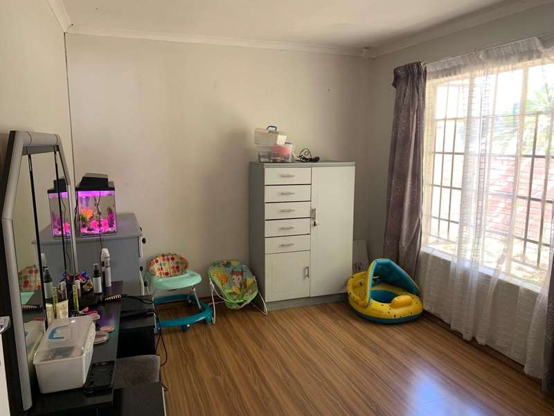 Welcome to your perfect family retreat! This beautifully maintained 3-bedroom home offers comfortable, functional living with a range of features designed for both convenience and lifestyle. Step into the spacious open-plan living area, ideal for relaxed family time or entertaining guests. A versatile multi-use room provides the perfect space for a second lounge, home office, or hobby room — the choice is yours! Each of the three bedrooms features built-in cupboards and laminated flooring, adding a touch of warmth and practicality. The main bathroom includes a laundry point for your convenience, complemented by an extra guest toilet for added comfort. The kitchen boasts ample cupboard space, making meal prep and storage a breeze. Step outside to the covered entertainment area with built-in braai, ideal for weekend gatherings and enjoying South Africa’s outdoor lifestyle. Parking is no issue with two carports and two additional parking spaces. The irrigated garden is eco-friendly, with a grey water system that reuses bathroom water, helping you save while keeping your garden green. Your safety is a priority with a fully walled perimeter, palisade fencing, alarm system, burglar bars, and security gates. Additional storage is covered too — the property includes a Wendy hut that can be used as a garden shed for all your extras. Other features include a solar geyser for energy efficiency and a linen cupboard for extra storage. This home truly has it all — comfort, security, space, and smart sustainability. Don’t miss the opportunity to make it yours!