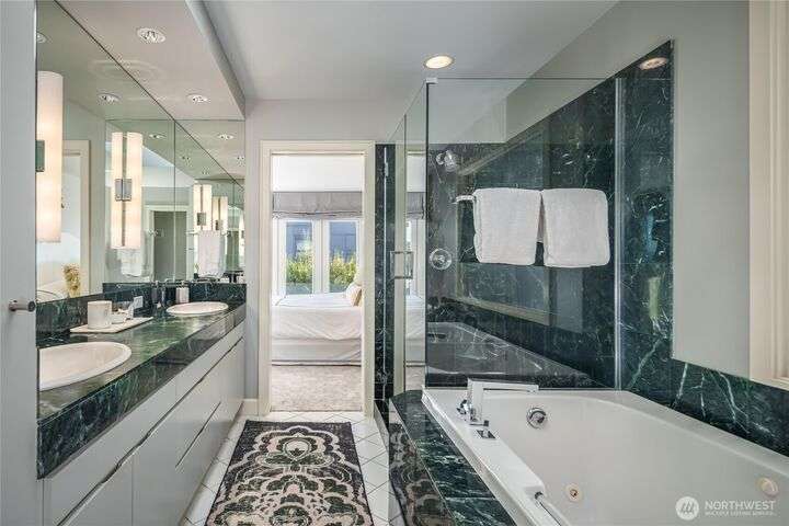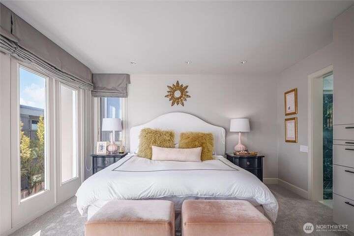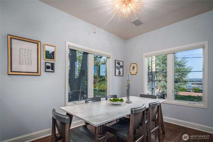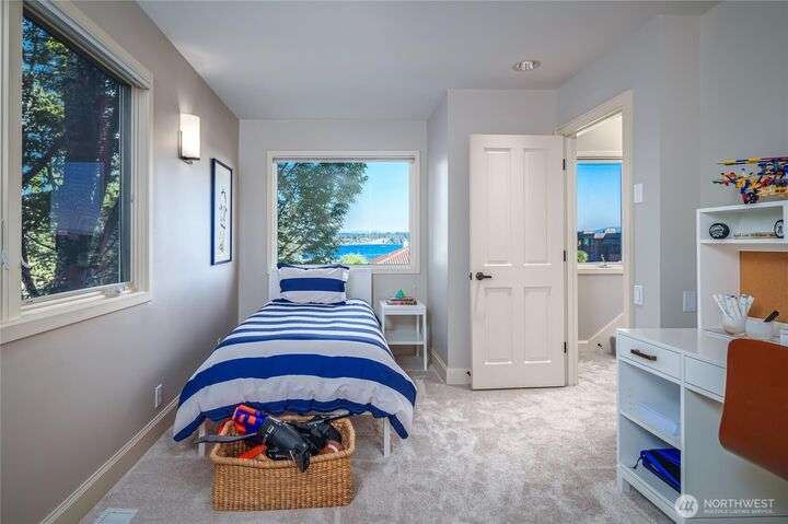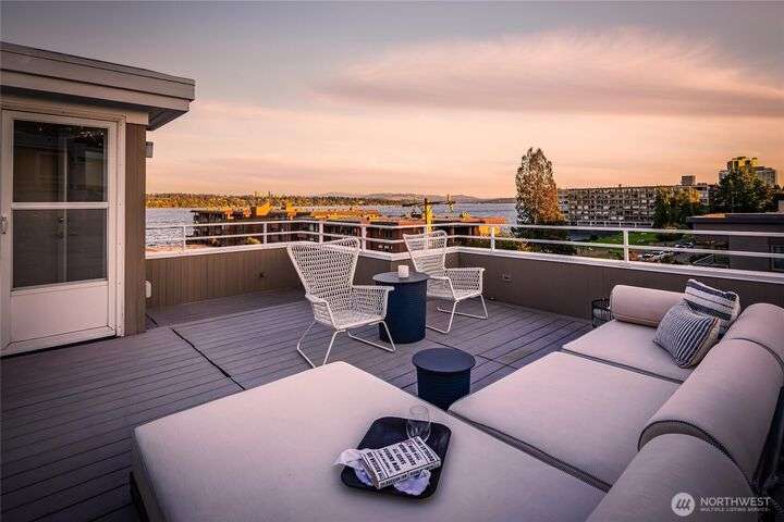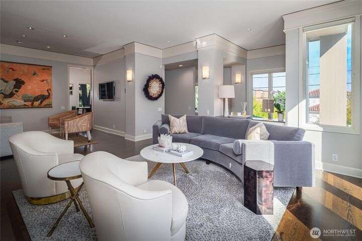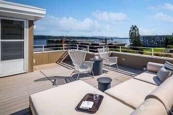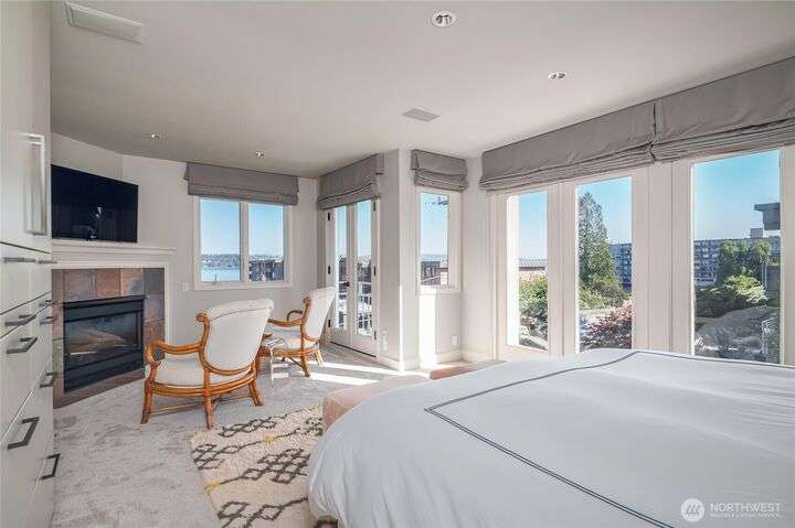 Experience luxury living in the heart of Seattle’s coveted Madison Park neighborhood. This beautifully appointed home showcases breathtaking views of Lake Washington, the Cascades, and majestic Mt. Rainier. Soaring ceilings and expansive windows flood the interiors with natural light, while the epic primary suite offers a cozy fireplace, spa-like bath, and spacious walk-in closet. A secondary junior primary suite and serene lower level guest bedroom and bath await. Entertain or unwind on the rooftop deck with panoramic vistas stretching in every direction. An attached two-car garage provides convenience and ease in one of Seattle’s most desirable locations. Steps to Lake Washington and all of Madison Park's boutique shops and restaurants.