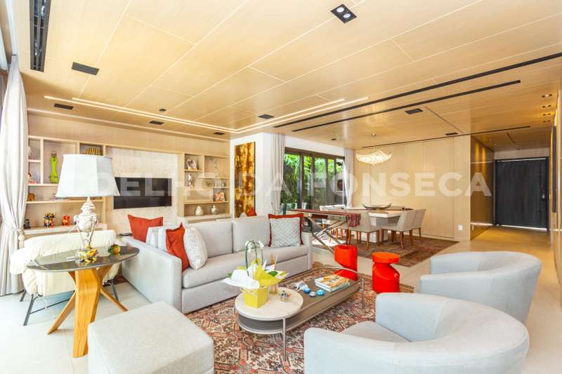 Casa em Condomínio no bairro Brooklin Novo com 562m² área construída, 4 dormitório(s), 3 suíte(s), 4 vaga(s), 6 banheiro(s), piscina, escritório, depósito, mobiliado (a), ar condicionado, dep. de empregados, varanda, elevador.