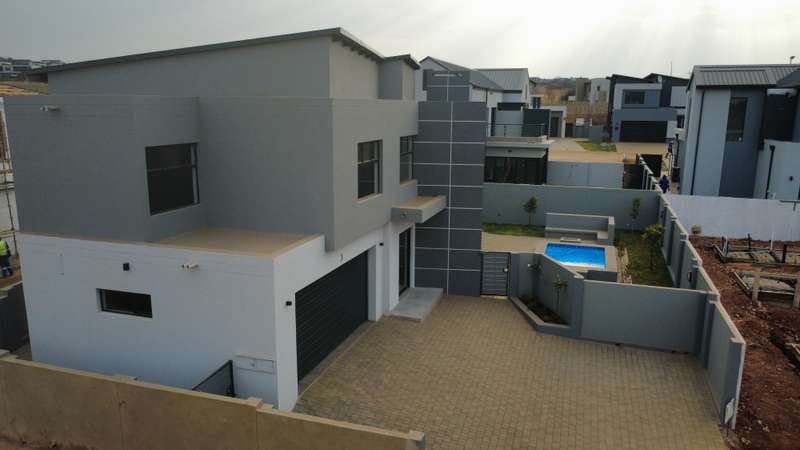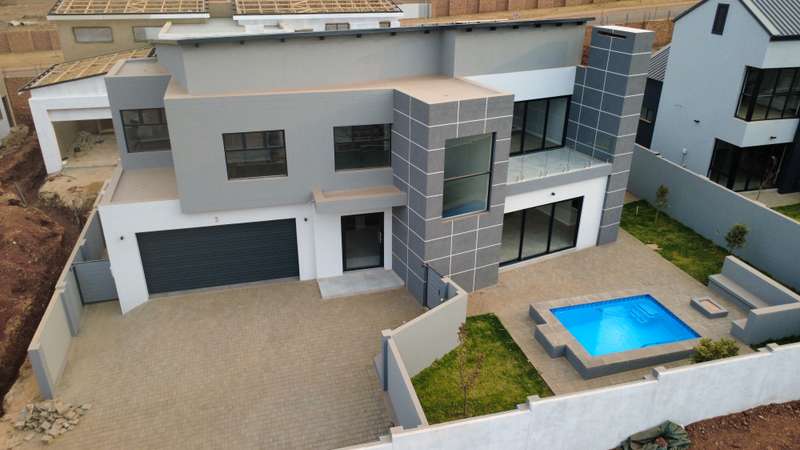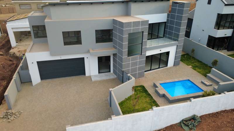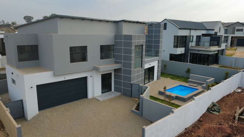 Modern Unique Design I High-End Finishes I Ready for occupation | House features: Downstairs: - Entrance foyer. - Staircase - Kitchen & scullery - Lounge area - Dining/Braai area - Ensuites guest bedroom. - 2 Garages with enough space for extra 2 cars - Swimming Pool with Boma - Staff Accommodation Upstairs: - Ensuite master bedroom area with open spacious balcony - 2 Bedroom sharing a bath - Study nook - Double volume. For appointment and more information contact us today.