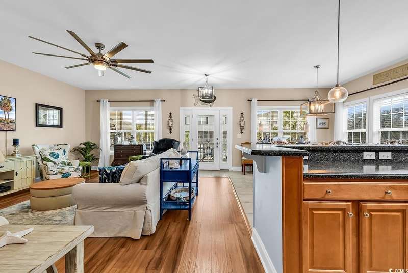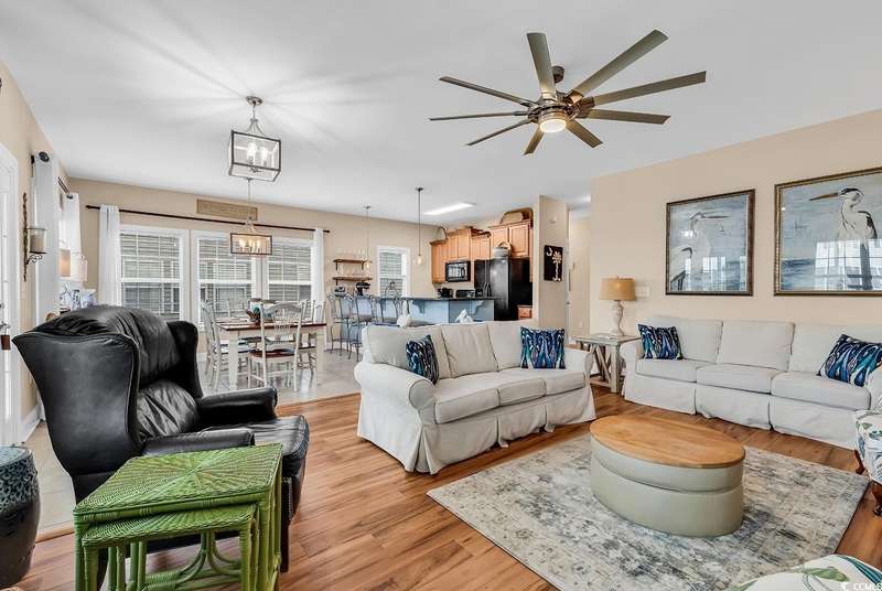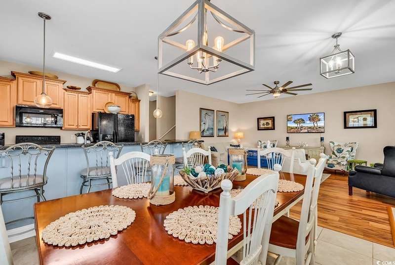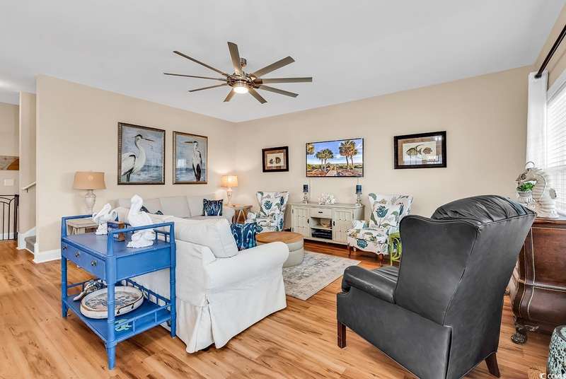 Can you here the ocean calling your name? Welcome to a rare gem tucked away in the peaceful enclave of Kelly Court Villas—just a quick stroll or golf cart ride to the beach, with convenient public access and parking. This beautifully maintained home offers the perfect balance of comfort, space, and coastal charm. Kelly Court Villas is known for its quaint coastal charm, low-maintenance lifestyle, complete with lawn care handled by the HOA and access to two community pools. This particular home has never been used as a rental and has only had one owner, making it a standout opportunity with an impressive 4,005 square feet under roof. The ground level features a spacious enclosed garage, easily accommodating two vehicles, a golf cart (possibly another smaller vehicle), and all your beach essentials. You'll also find a laundry area, a utility room with a newer hot water heater (installed in 2022), located on the ground level. Upstairs on the main living floor, the open-concept layout flows from kitchen to dining to living room, leading out to a charming screened front porch—the perfect spot to relax and enjoy ocean breezes and swaying palm trees. This level also includes a half bath and a generous primary suite complete with a walk-in closet, spa-like bathroom, whirlpool tub, and a walk-in shower. The third level offers a secondary living space and four spacious bedrooms, each with its own private bath—ideal for accommodating guests or family. Additional updates include two HVAC systems (replaced in 2019 and 2021), new waterproof laminate flooring on the lower level (2019), and a brand-new roof (2024). If you're searching for ample space, modern upgrades, and a location just minutes from the beach, this one stands alone. You’ll be hard-pressed to find anything comparable in size, condition, and proximity to the coast. **Although this home looks and lives like a semi-detached home (sharing one wall with neighbor), the legal description is actually an HPR. Ask your agent for further details. Also, NO SHORT TERM RENTALS ALLOWED!