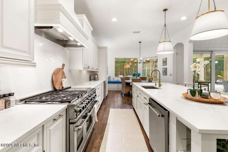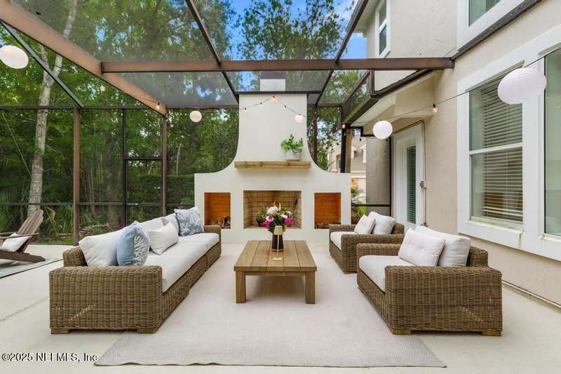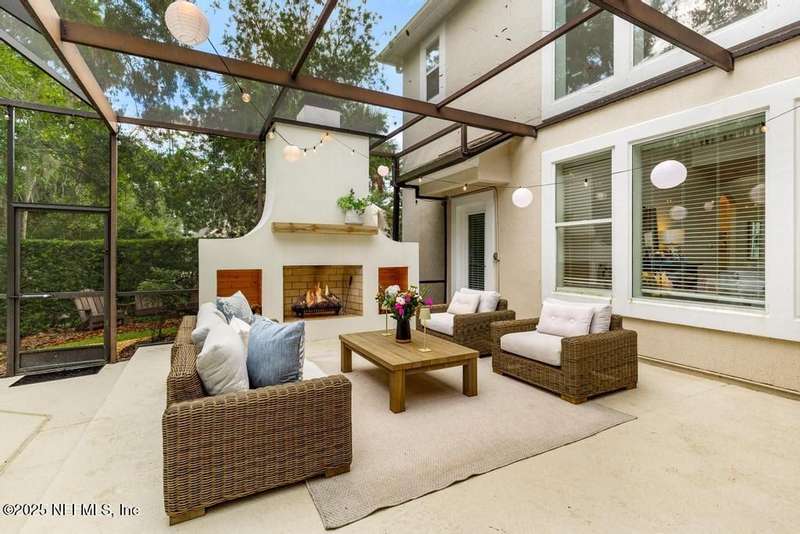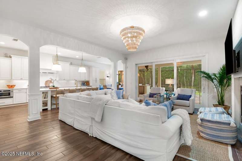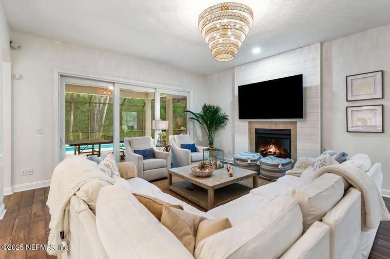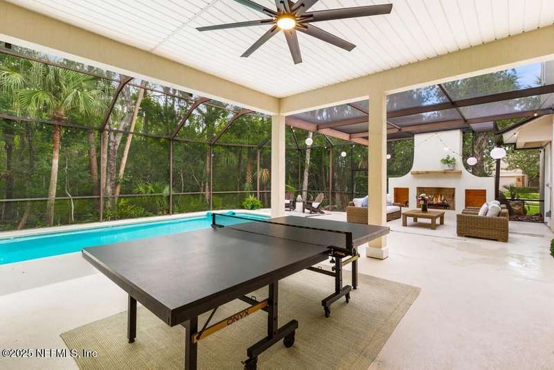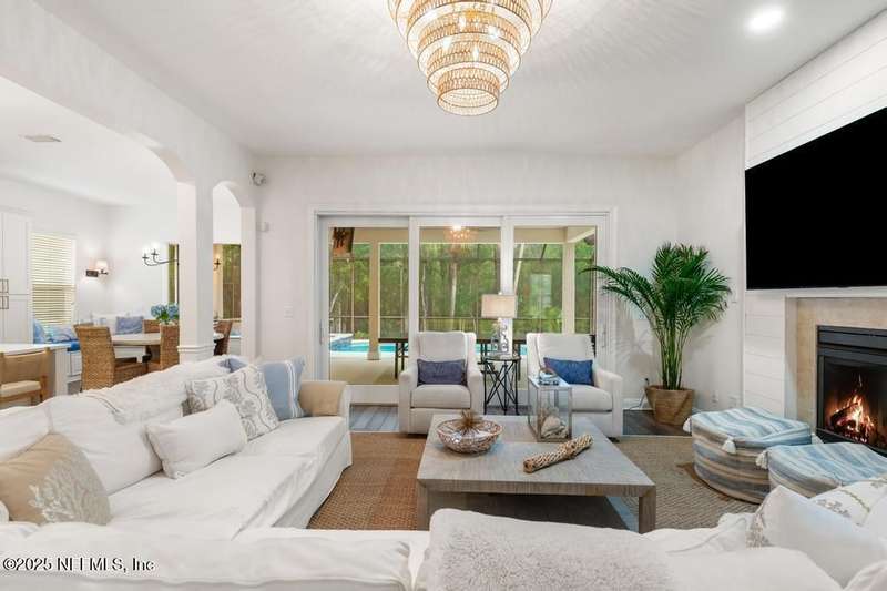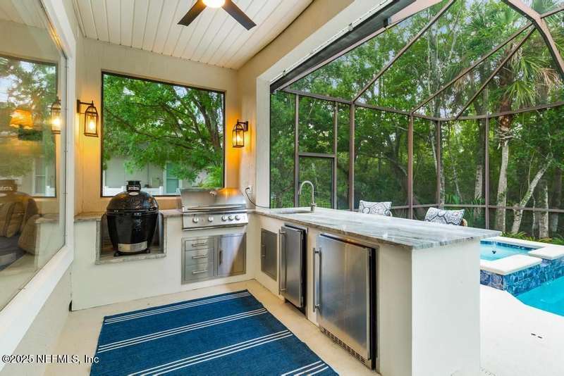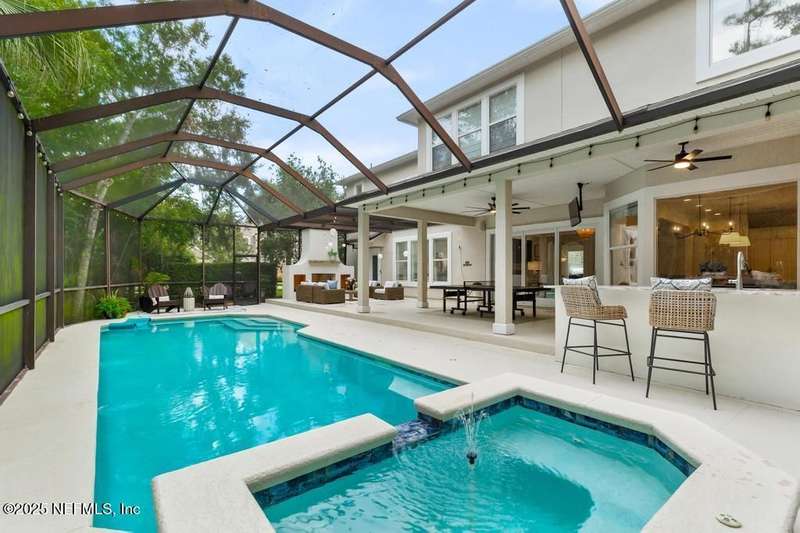 This beautifully renovated Marsh Harbor estate showcases a stunning new gourmet kitchen and resort-style outdoor living spaces designed for entertaining and everyday luxury.Step inside to discover a fully renovated kitchen featuring a Sub-Zero refrigerator, 5-burner gas range with griddle, built-in drawer microwave, commercial-grade double oven, large quartz island and designer lighting-every detail thoughtfully curated for both beauty and function.Equally impressive is the outdoor living area, newly designed for year-round enjoyment. Entertain or unwind beside the gorgeous wood-burning fireplace, prepare meals in the custom outdoor kitchen, and relax by the sparkling saltwater pool and hot tub-all surrounded by peaceful preserve views for total privacy.Inside, this home offers 5 bedrooms, 5.5 baths, and 4,173 square feet. The open living room features soaring 20-foot ceilings and wood-look tile flooring, while the primary suite showcases a spa-inspired fully remodeled bathroom. A first-floor in-law suite provides versatility and the office includes a built-in bar. Enjoy community amenities including a pool, cabana, pavilion and dock-with a public boat ramp just minutes away. Zoned to top-rated Ponte vedra Beach schools (Ocean Palms Elementary, Landrum Middle, and Ponte Vedra High), with no CDD fees and only 4 miles to the beach, this home truly offers the best of coastal living.Don't miss the full video tour-this move-in ready home is a must see!