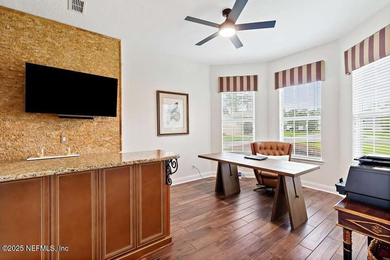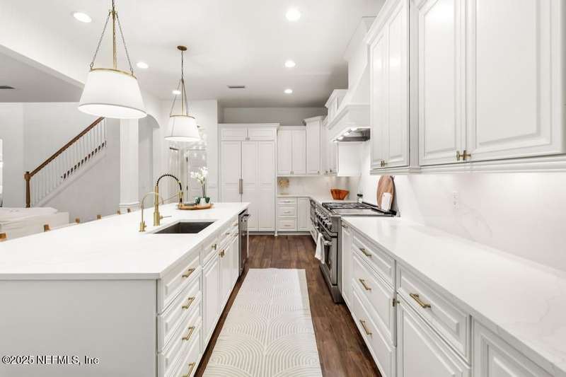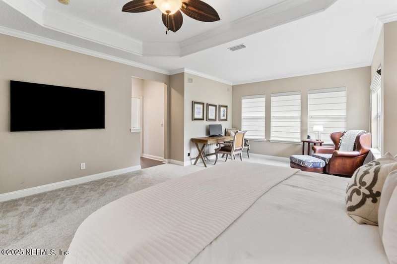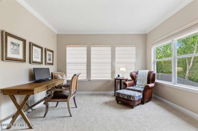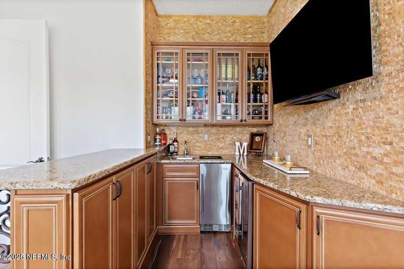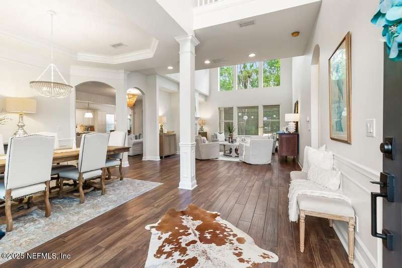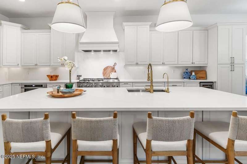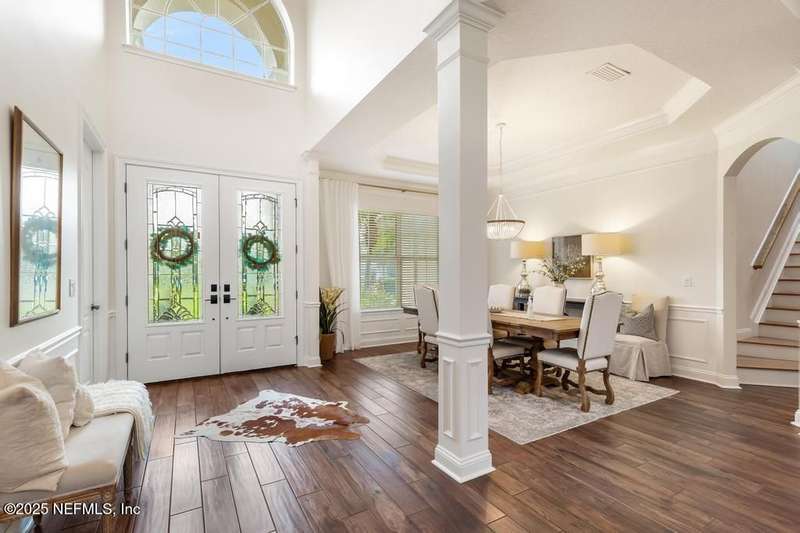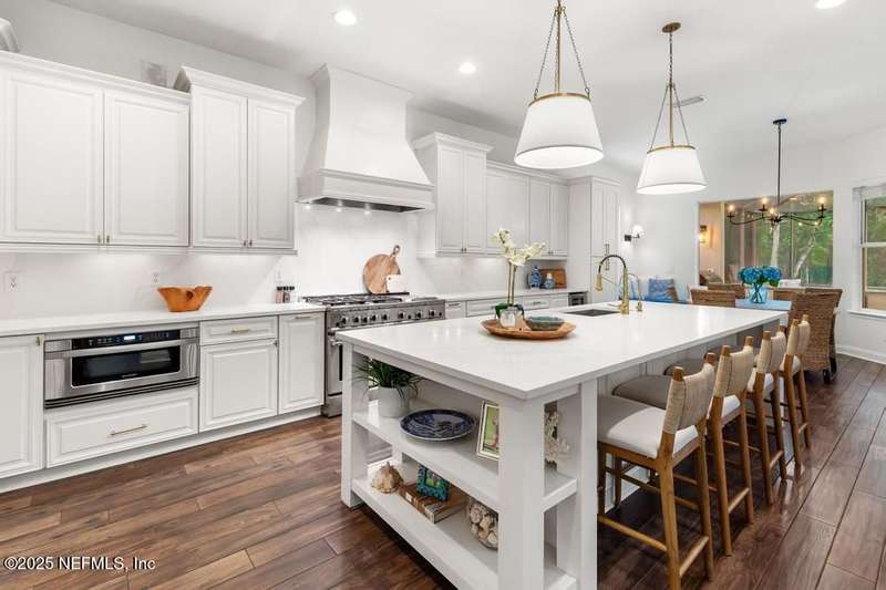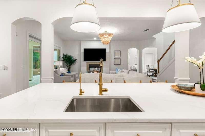 This beautifully renovated Marsh Harbor estate showcases a stunning new gourmet kitchen and resort-style outdoor living spaces designed for entertaining and everyday luxury.Step inside to discover a fully renovated kitchen featuring a Sub-Zero refrigerator, 5-burner gas range with griddle, built-in drawer microwave, commercial-grade double oven, large quartz island and designer lighting-every detail thoughtfully curated for both beauty and function.Equally impressive is the outdoor living area, newly designed for year-round enjoyment. Entertain or unwind beside the gorgeous wood-burning fireplace, prepare meals in the custom outdoor kitchen, and relax by the sparkling saltwater pool and hot tub-all surrounded by peaceful preserve views for total privacy.Inside, this home offers 5 bedrooms, 5.5 baths, and 4,173 square feet. The open living room features soaring 20-foot ceilings and wood-look tile flooring, while the primary suite showcases a spa-inspired fully remodeled bathroom. A first-floor in-law suite provides versatility and the office includes a built-in bar. Enjoy community amenities including a pool, cabana, pavilion and dock-with a public boat ramp just minutes away. Zoned to top-rated Ponte vedra Beach schools (Ocean Palms Elementary, Landrum Middle, and Ponte Vedra High), with no CDD fees and only 4 miles to the beach, this home truly offers the best of coastal living.Don't miss the full video tour-this move-in ready home is a must see!