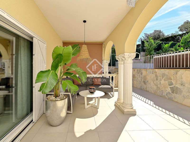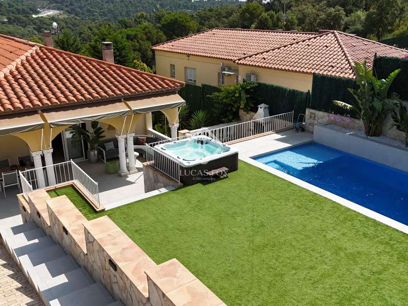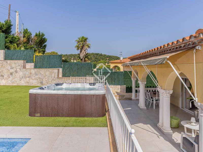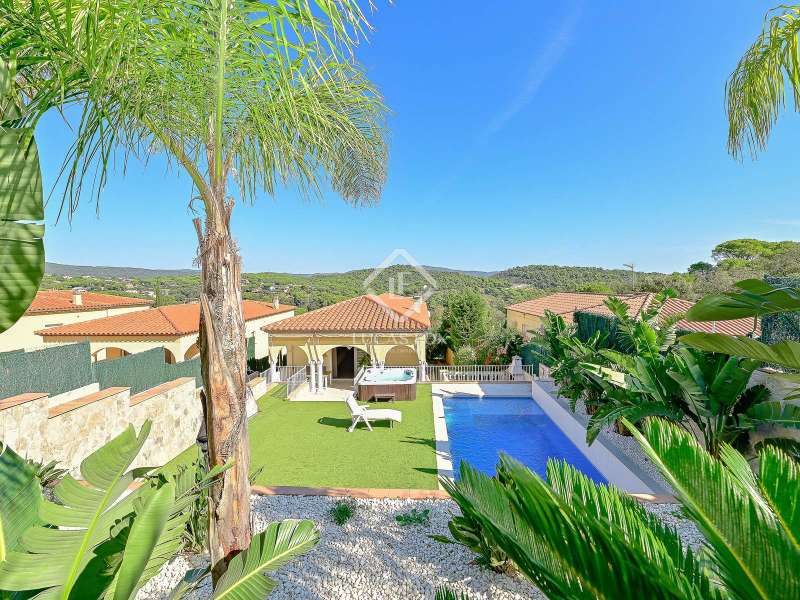 Lucas Fox presents Villa Sofia, a magnificent villa with a tourist license near the prestigious residential area of Treumal, just 5 minutes by car from the centre of Platja d'Aro, in the heart of the Costa Brava, and a 15-minute walk from the idyllic beaches of Cala del Pi and Cap Roig. The villa was built in 2004 on a 695 m² plot . It has a built area of 300 m², spread over two floors and is southerly aspect, allowing it to enjoy natural light throughout the day. Upon entering the property, we are greeted by a well-kept garden with artificial grass and palm trees, which offers complete privacy to enjoy its 9 x 4 meter saltwater pool—recently renovated—and an integrated jacuzzi. On the main floor , we find a spacious and bright living-dining room with a fireplace and a fully equipped open kitchen . On this same floor, there is a guest bathroom, a double bedroom , and the main bedroom with a large private bathroom and dressing room. The lower floor houses a second living room, a ensuite bedroom , and another double bedroom with a separate bathroom . From here, there is direct access to the 54 m² enclosed garage, which can accommodate two vehicles and has additional storage or laundry room space. The property is in excellent condition, with recent improvements to the terraces, garden , and interior lighting. It features double-glazed windows, automatic blinds on the main floor , air conditioning, oil heating, and a terrace equipped with new awnings and a barbecue area, ideal for family gatherings and relaxing moments. One of Villa Sofia's greatest attractions is its active tourist license, which offers significant profitability potential as a vacation investment. Don't miss the opportunity to acquire this exclusive property. Contact us for more information or to schedule a viewing.