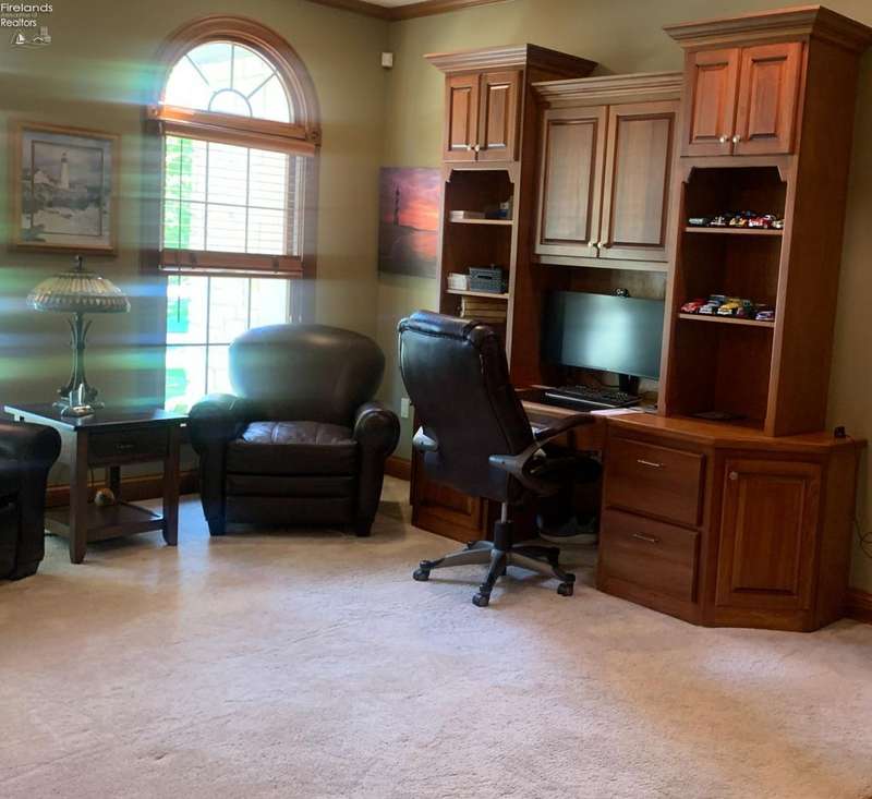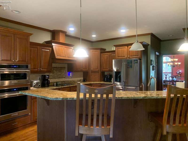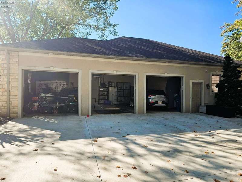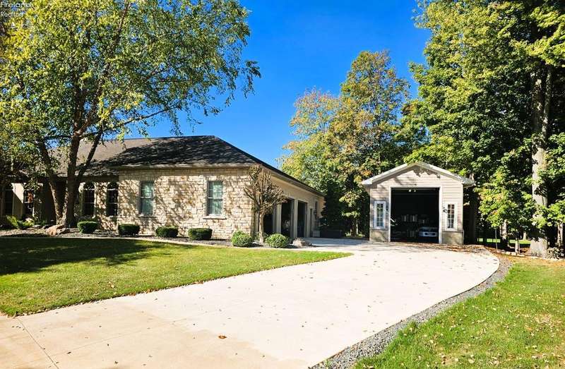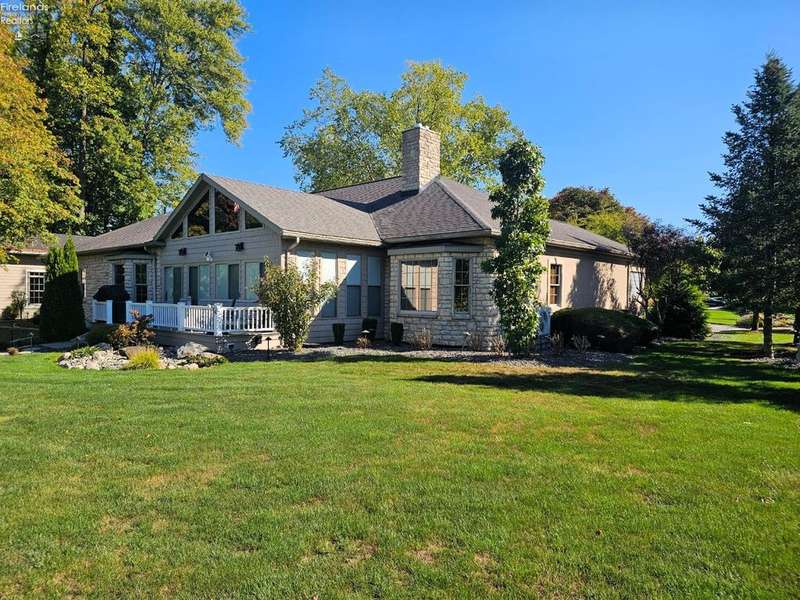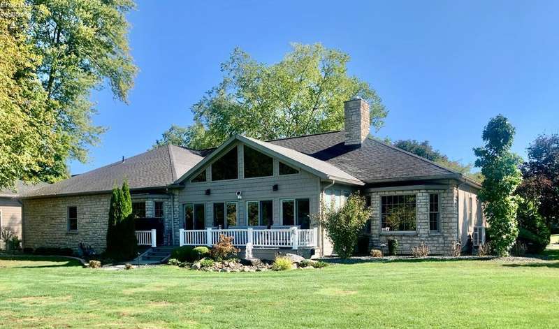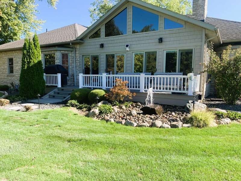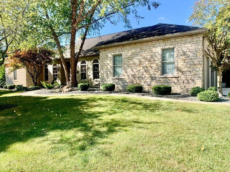 This listing is in contract contingent upon Buyer Selling her home! her time is running out and sellers are entertaining BACK UP OFFERS!!This is a beautiful home on the Golf Course, built by "SEITZ DESIGN" EASY TO SHOW!!BEAUTIFUL CUSTOM BUILT STONE/STUCCO RANCH! Step into this remarkable home featuring a grand entrance foyer. It offers ample room with three to four bedrooms, 3.5 bathrooms, and a heated three-car attached garage, along with a newly added heated two-car detached garage, perfect for accommodating a motor home or potential boat storage! Situated in the Eagle Creek Subdivision on a tranquil cul-de-sac, this property offers beautiful views of the 17th green from the newly constructed heated and air-conditioned sunroom, which showcases a stunning vaulted wall of windows.Key features include a great room with custom built-ins and a cozy gas log fireplace, a formal dining room for elegant gatherings, and a spacious owner's suite featuring two walk-in closets, a fireplace, and a luxurious bathroom complete with a shower and whirlpool tub. There is an adjacent patio next to the custom-designed kitchen eating area, perfect for entertaining guests, Kitchen has updated appliances and a water purifier under the sink. There's a convenient main floor laundry with a planning desk.The finished basement includes an additional bedroom and full bath, a game room and exercise room, a storage room, and direct access from the attached garage stairway leading to the basement. Additional amenities include Custom landscaping by Miller's including a water fountain. An instant hot water system, a new reverse osmosis system, a humidifier & air purifier on the furnace, central air conditioning and a central vacuum system. Most of the driveway has been updated with new concrete.