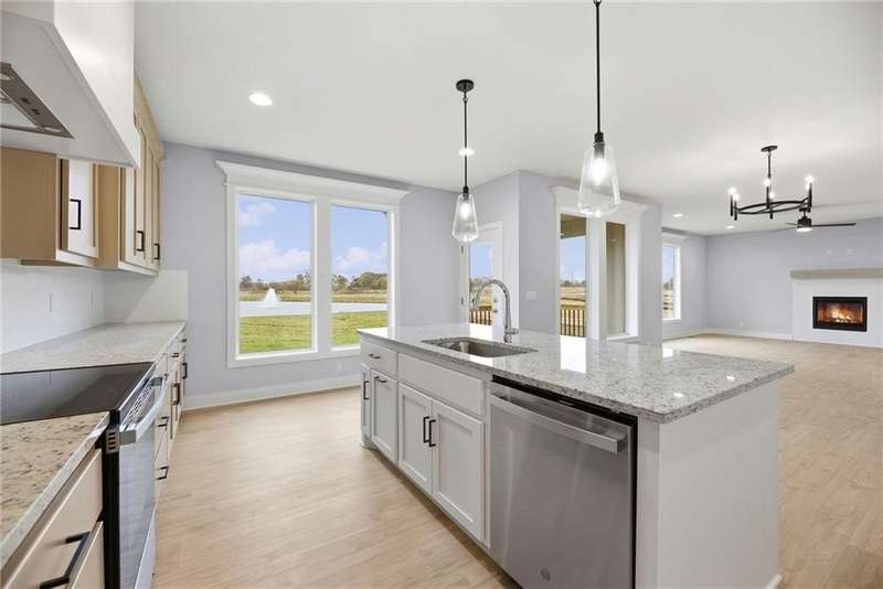 Lot 2. Introducing the striking "Miley I" by Lamendola Custom Homes! This exceptional two-story home combines luxury and functionality in a stunning environment that you won’t want to miss. Positioned perfectly, this home backs onto a serene lake with a picturesque fountain view, surrounded by mature trees that enhance its natural beauty. Enjoy your morning coffee on the covered deck or unwind in the evening; the breathtaking views will immerse you in tranquility and a connection to nature. On the main level, experience the power of an open-concept layout featuring a gourmet kitchen with an oversized island and a walk-in pantry that effortlessly flows into the dining and living areas. A dedicated front office provides an ideal workspace near the front patio, while a drop zone adjacent to the spacious three-car garage, 8-foot doors, adds unmatched convenience. A half bath completes this thoughtfully designed space. Ascend to the upper level, where you'll find the impressive primary suite, complete with a spa-inspired bath featuring dual vanities, a stylish walk-in shower, and ample walk-in closets. The spacious laundry room is strategically located next to the primary bedroom for your convenience. This level also boasts three additional bedrooms and two full baths, including a secondary bedroom with its own private en suite—perfect for guests or providing that extra touch of privacy. The daylight basement is designed for potential; featuring above-grade egress windows, it’s ready for a future bedroom and is stubbed for a full bathroom, giving you the flexibility to expand as needed. Home is Ready for a 30 day close. *Note: Features, sizes, square footage, and taxes are estimated.