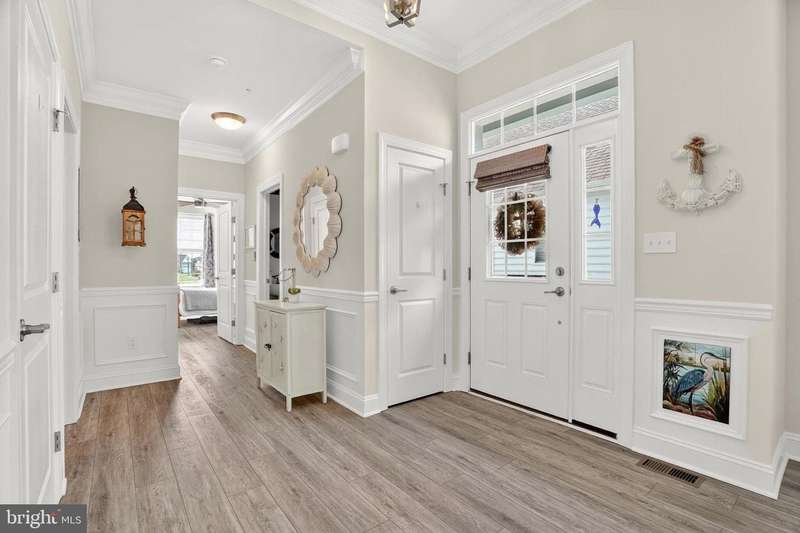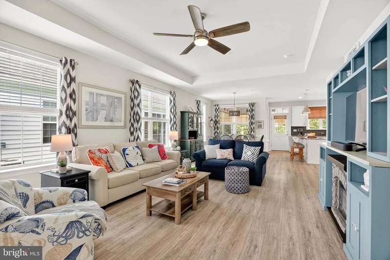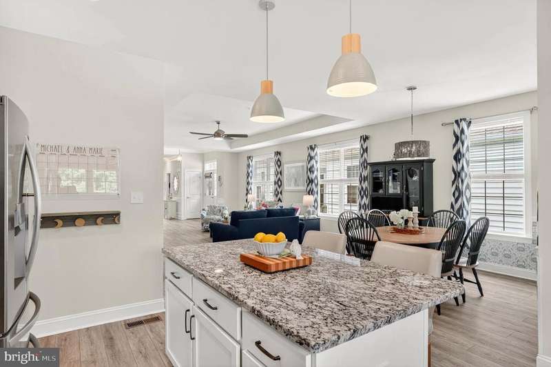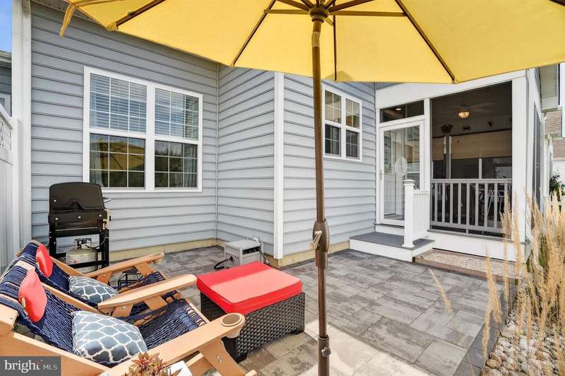 NEW PRICE! Welcome to Bay Bridge Cove, a premier 55+ community on beautiful Kent Island! This better-than-new end-unit Laurel model is filled with natural light from a wall of windows and offers an expanded floor plan with a screened porch with a fan and sun shades, a beautifully landscaped and fenced paver patio, and a sitting room off the primary bedroom. The many upgrades include luxury vinyl plank flooring throughout, a premium kitchen with upgraded appliances and custom backsplash, a tiled primary bath, upgraded lighting, including exterior solar lights, and added overhead storage in the garage. Bay Bridge Cove amenities include an outdoor pool, tennis, pickleball, and bocce courts, a crab shack, gardens, walking paths, and a clubhouse with a fitness center, library, game room, meeting room, and dog park. Perfectly located less than 5 minutes to the Bay Bridge, close to shopping, golf, and waterfront restaurants, walking distance to Kent Manor Beach Club, and with easy access to the Cross Island Trail, public parks, Annapolis, BWI, Baltimore, DC, and multiple nationally recognized medical facilities. A perfect place to call home!